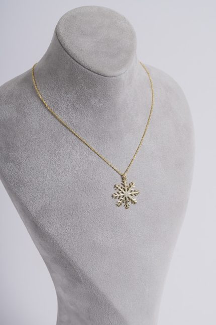 Kar Tanesi Gümüş Kolye Gold Kaplama 925 Ayar Gümüş