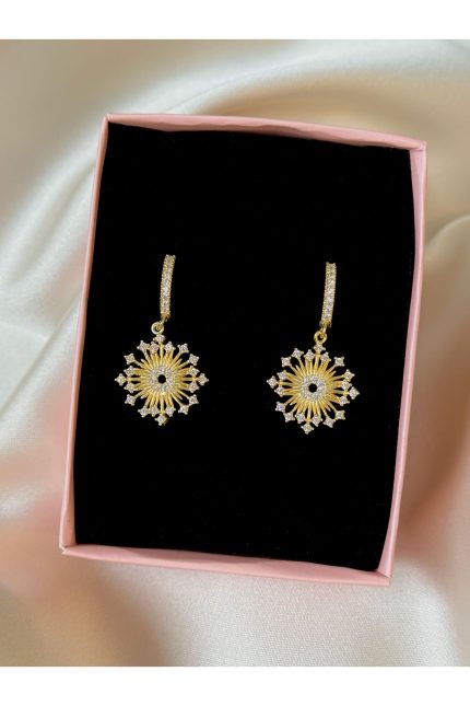 Zirkon Taşlı Sallantılı Işıltılı Yoncalı Gümüş Küpe Gold Kaplama Anti Alerjik 925 Ayar Gümüş