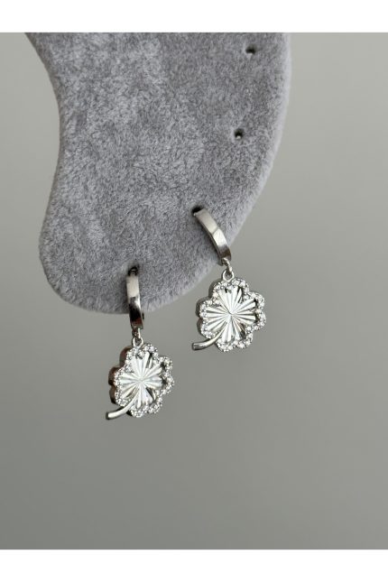 Zirkon Taşlı Sallantılı Işıltılı Yoncalı Gümüş Küpe 925 Ayar Gümüş