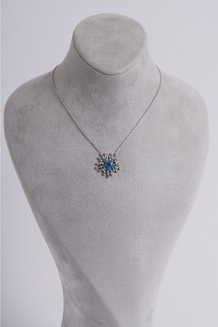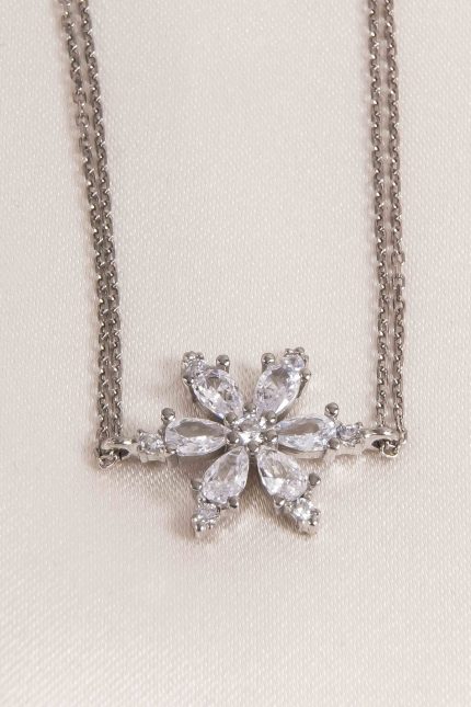 Yoncalı Detaylı Kar Kristali Kolye Silver 925 Ayar Gümüş