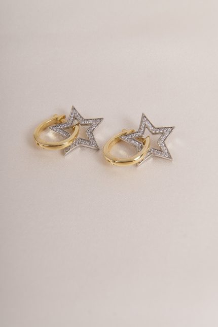 Zirkon Taşlı Sallantılı Yıldız Küpe Silver-gold Anti Alerjik 925 Ayar Gümüş