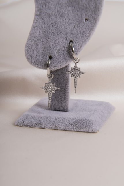 Zirkon Taşlı Sallantılı Kuzey Yıldızı Küpe Silver Anti Alerjik 925 Ayar Gümüş