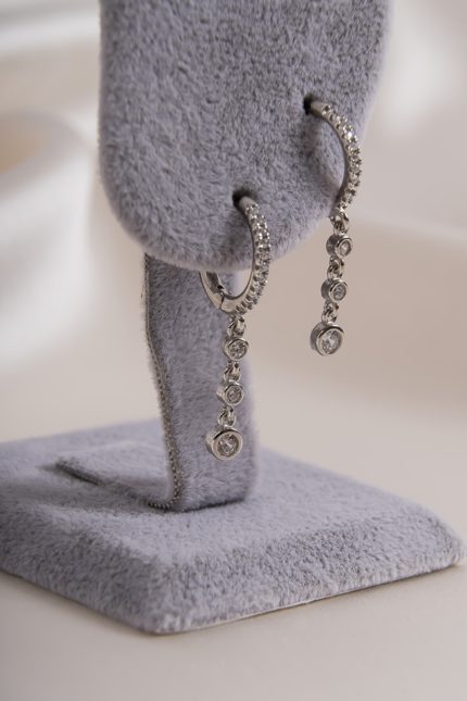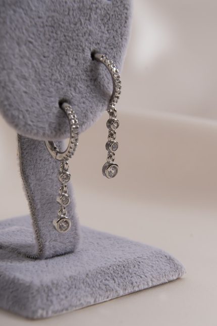 Zirkon Taşlı Sallantılı Gümüş Halka Küpe Anti Alerjik Silver 925 Ayar Gümüş