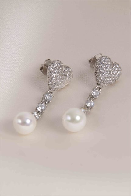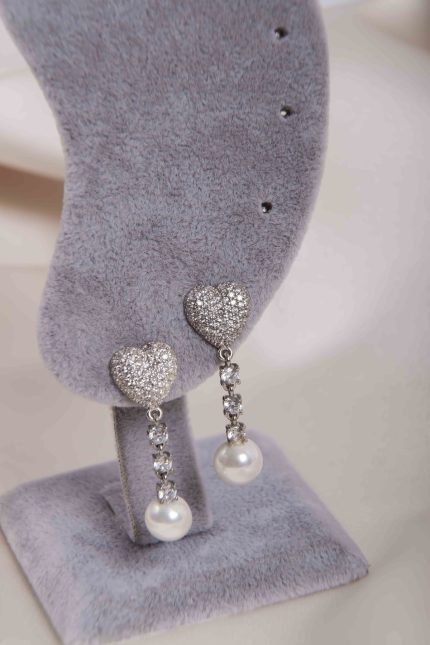 Zirkon Taşlı Sallantılı Incili Gümüş Küpe Silver Anti Alerjik 925 Ayar Gümüş