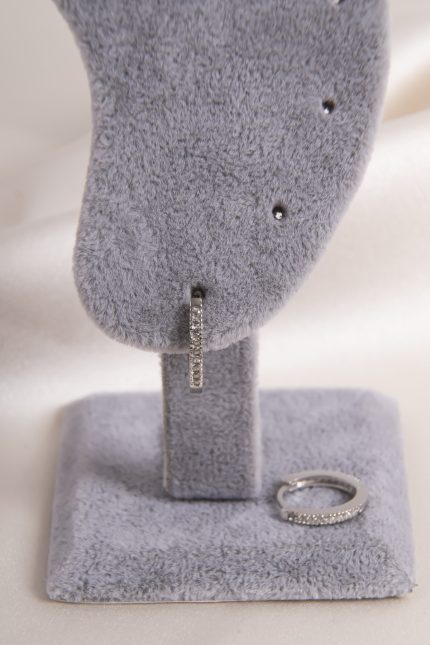 Baget Taşlı Pırlanta Montürlü Gümüş Halka Küpe Silver Anti Alerjik 925 Ayar Gümüş