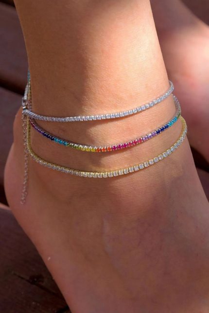 Zirkon Taşlı Su Yolu 925 Ayar Gümüş Halhal Gold Kaplama