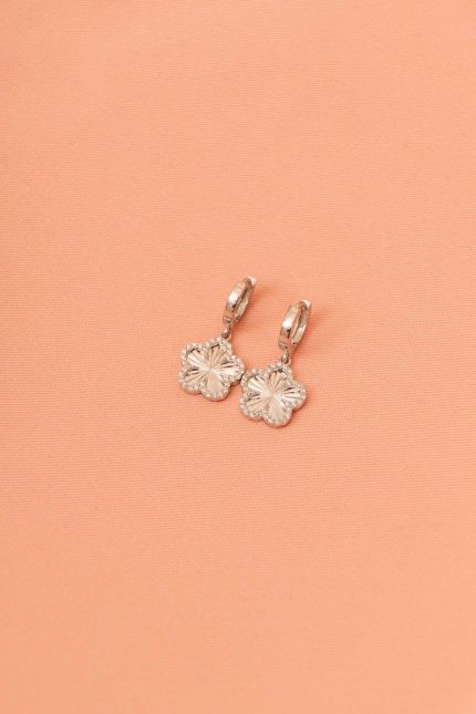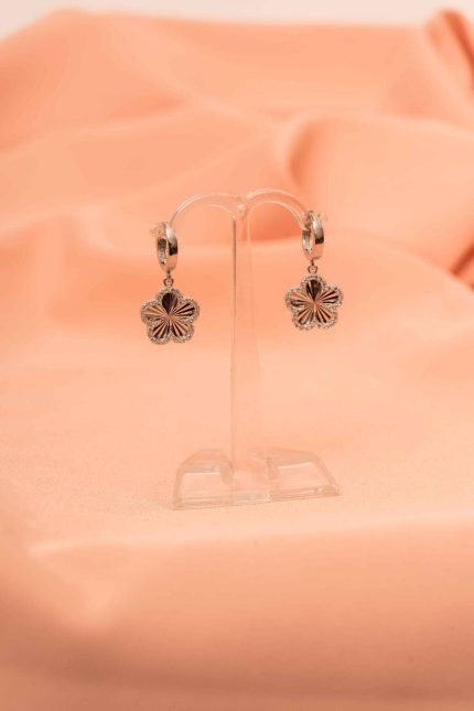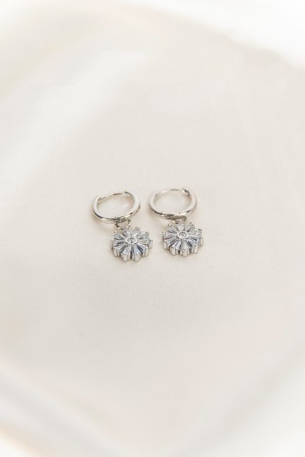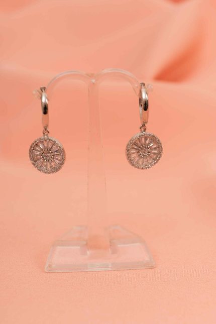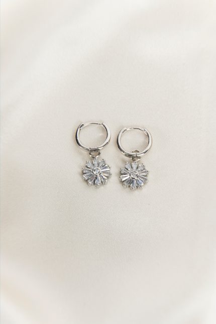 Baget Taşlı 925 Ayar Sallantılı Çiçekli Küpe Silver