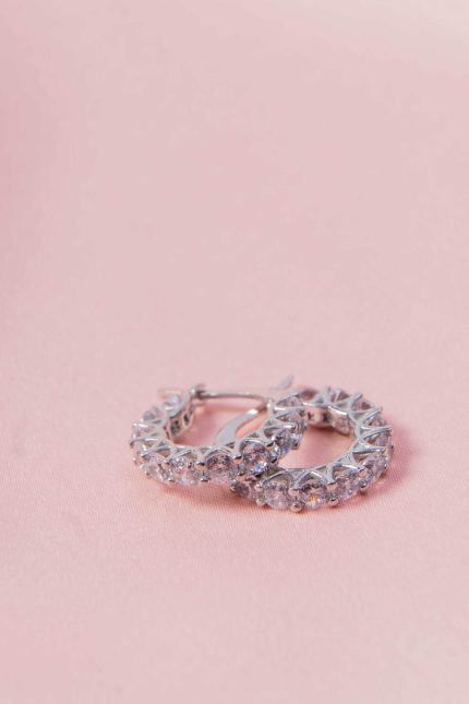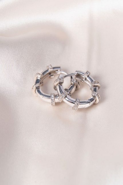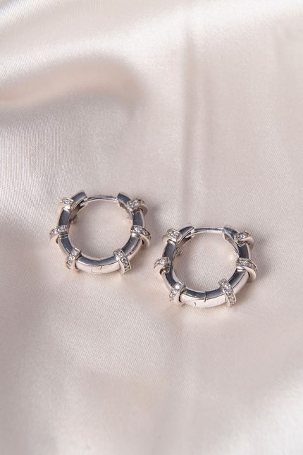 Pırlanta Montürlü Zirkon Taşlı Halka Küpe Silver