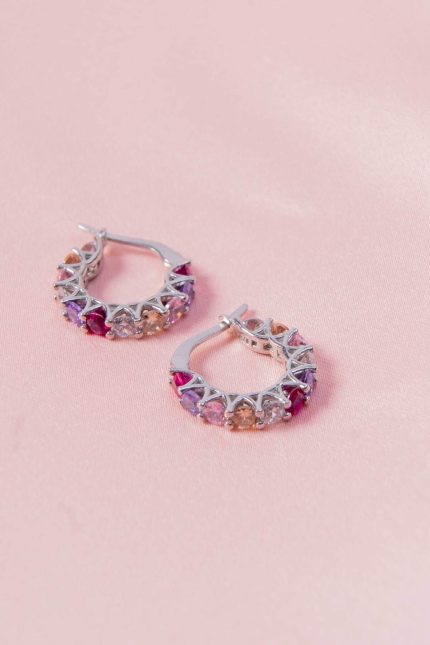 Pırlanta Montürlü Renkli Zirkon Taşlı Halka Küpe Silver