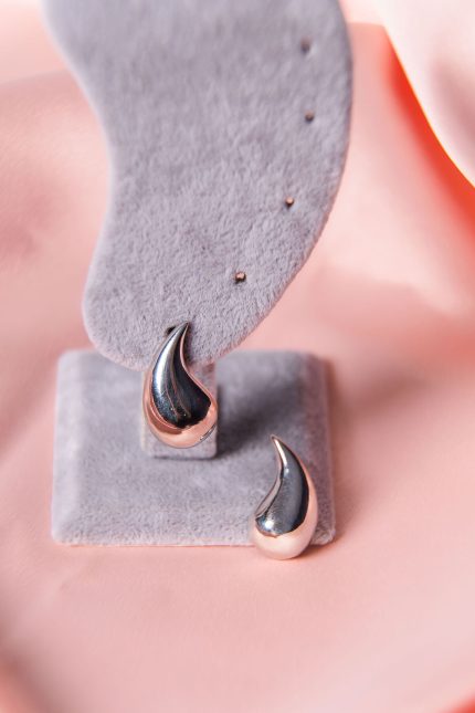 925 Ayar Silver Kaplama Damla Küpe, Anti Alerjik Bottega Model Küpe