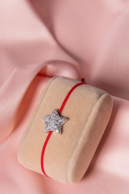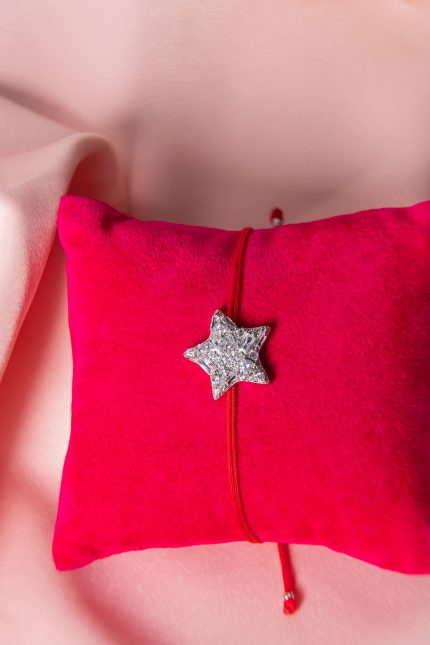 Baget Taşlı Yıldız Detaylı Bileklik Kırmızı İpli Bileklik Silver 925 Ayar Gümüş