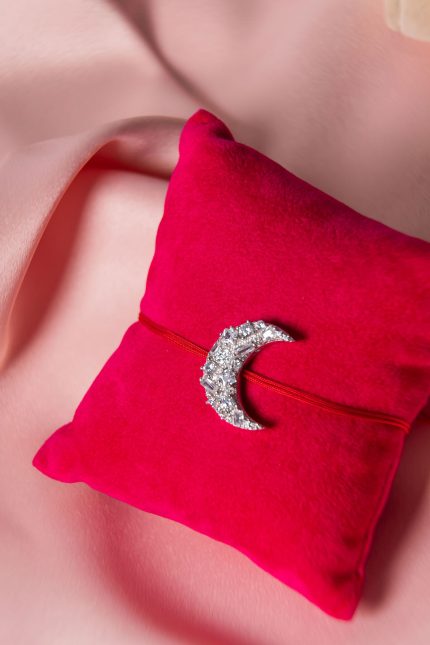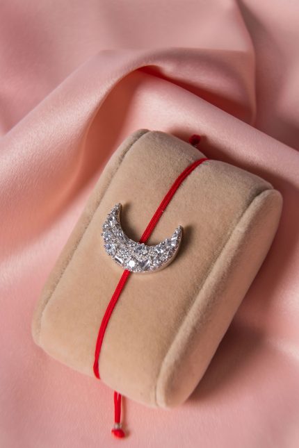 Baget Taşlı Ay Detaylı Bileklik Kırmızı İpli Bileklik Silver 925 Ayar Gümüş