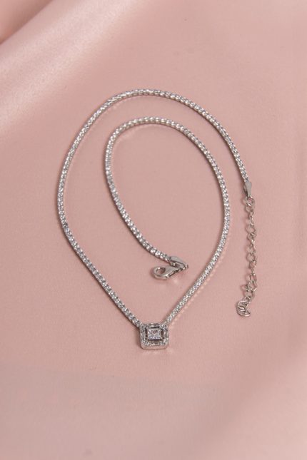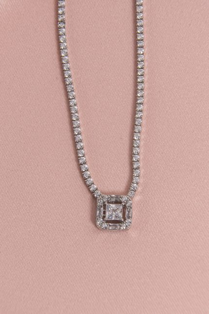 925 Ayar Gümüş Baget Taşlı Kolye Pırlanta Görünümlü Kolye Serenay Kolyesi