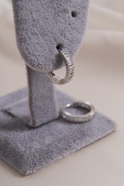 Baget Taş Detaylı Halka Küpe, 925 Ayar Gümüş Küpe Silver Anti Alerjik