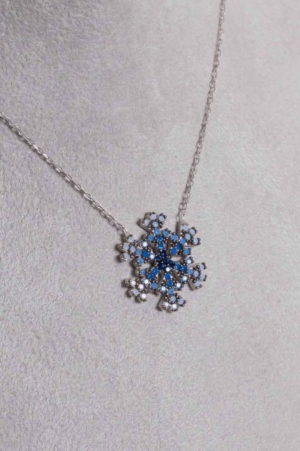 Mavi Zirkon Taşlı Kar Tanesi Kolye Silver 925 Ayar Gümüş