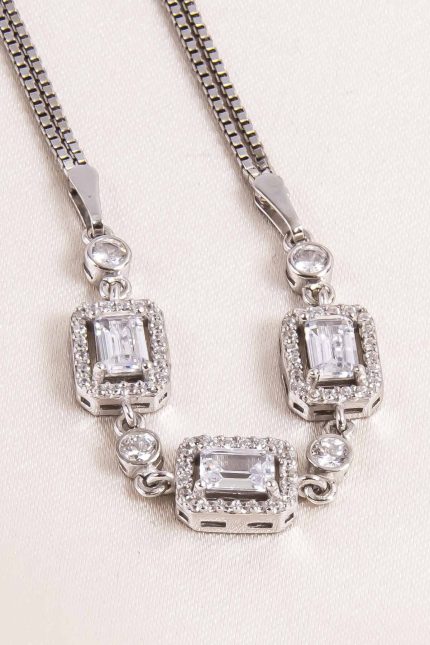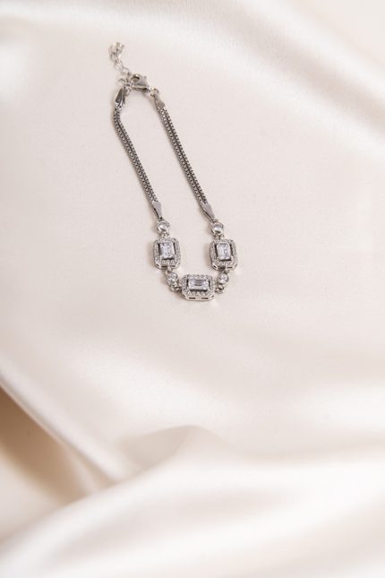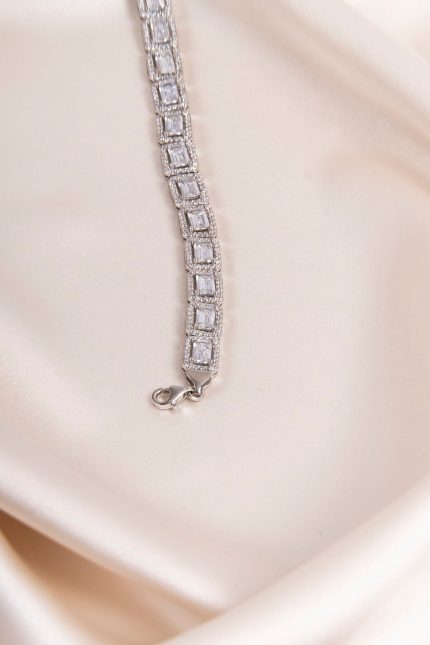 Baget Taşlı Pırlanta Görünümlü Bileklik Silver 925 Ayar Gümüş
