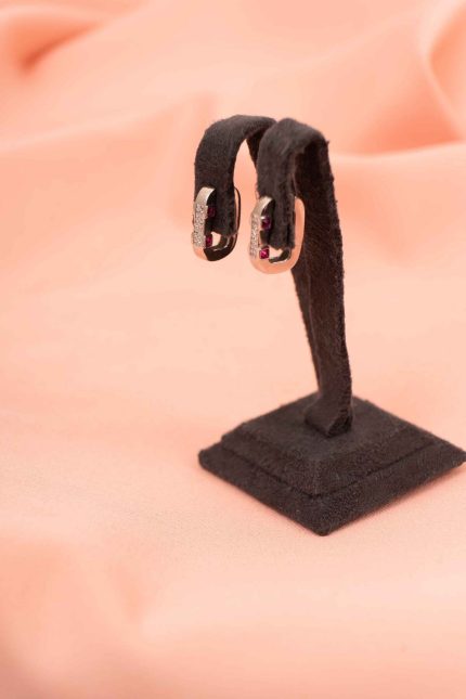 925 Ayar Gümüş Oval Halka Küpe Zirkon Taşlı Halka Küpe Yakut Taşlı Küpe