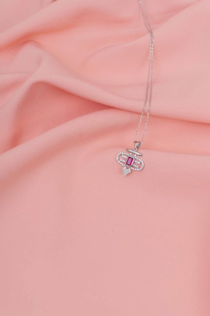 925 Ayar Gümüş Silver Baget Taşlı Yakut Kolye Pırlanta Görünümlü Kolye Etnik Kolye Serenay Kolyesi