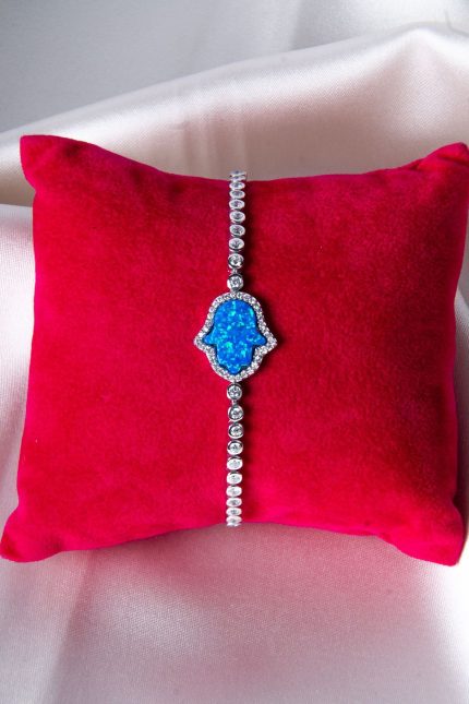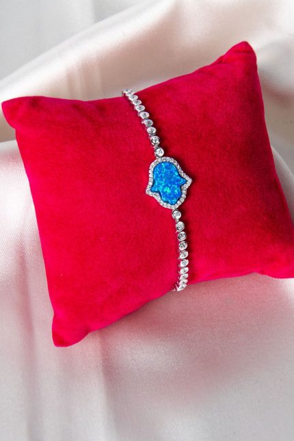 Mavi Opal Taşlı Fatmanın Eli Bileklik 925 Ayar Gümüş Bileklik Asansorlü Suyolu Bileklik