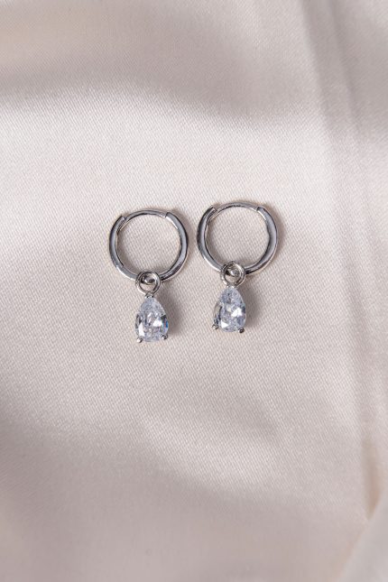 Sallantılı Damla Taş Detaylı Halka Küpe, 925 Ayar Gümüş Silver, Anti Alerjik, Küçük Halka Küpe