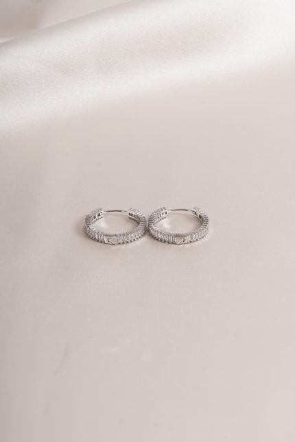 Baget Taşlı Gümüş Pırlanta Montürlü Küçük Halka Küpe Silver Anti Alerjik 925 Ayar Gümüş