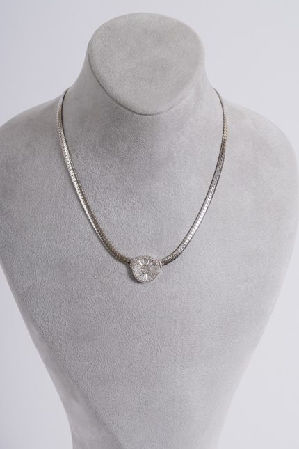 Baget Taşlı Italyan Yassı Zincir Kolye Silver 925 Ayar Gümüş