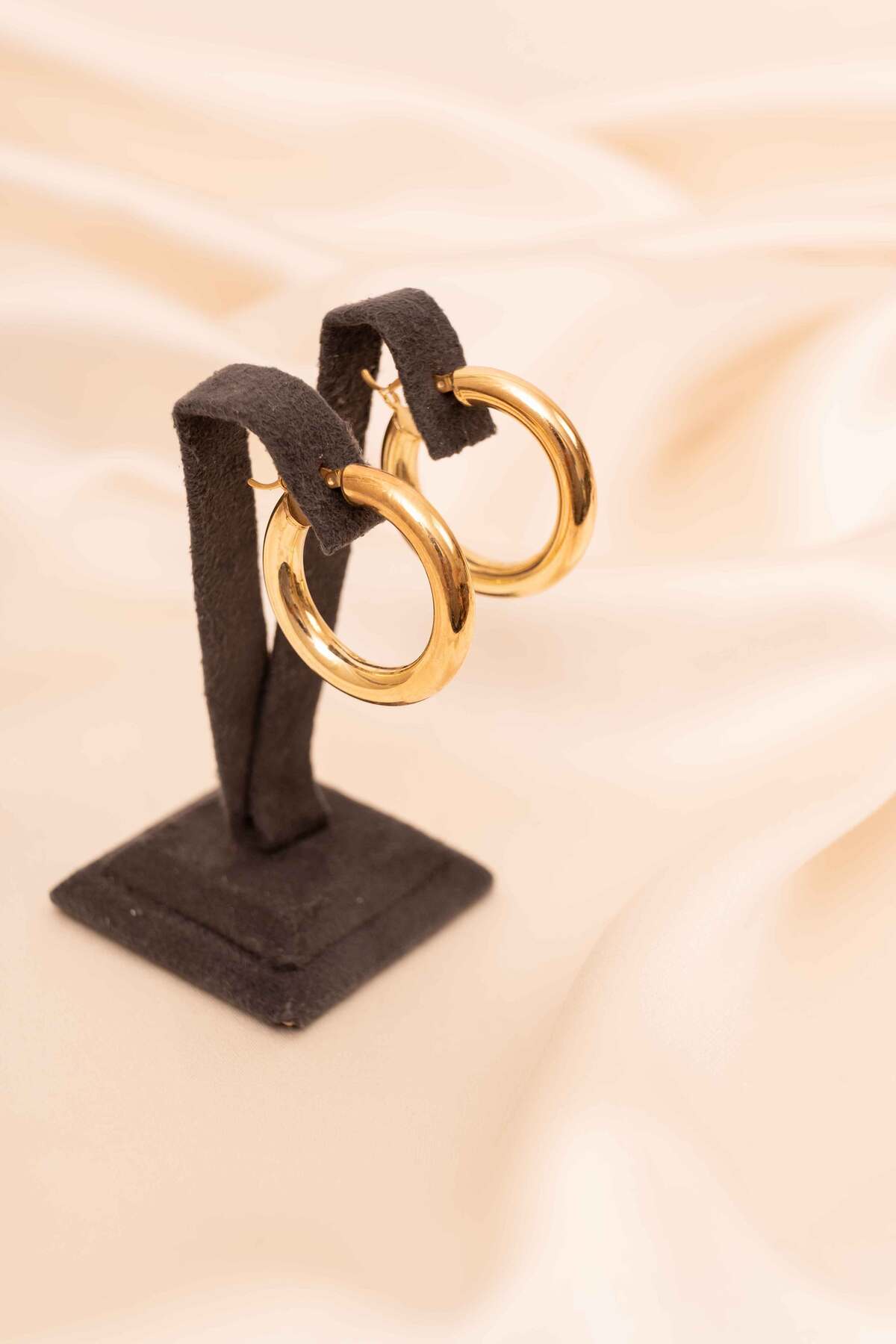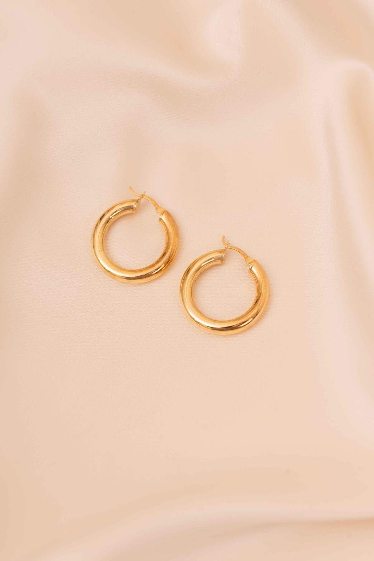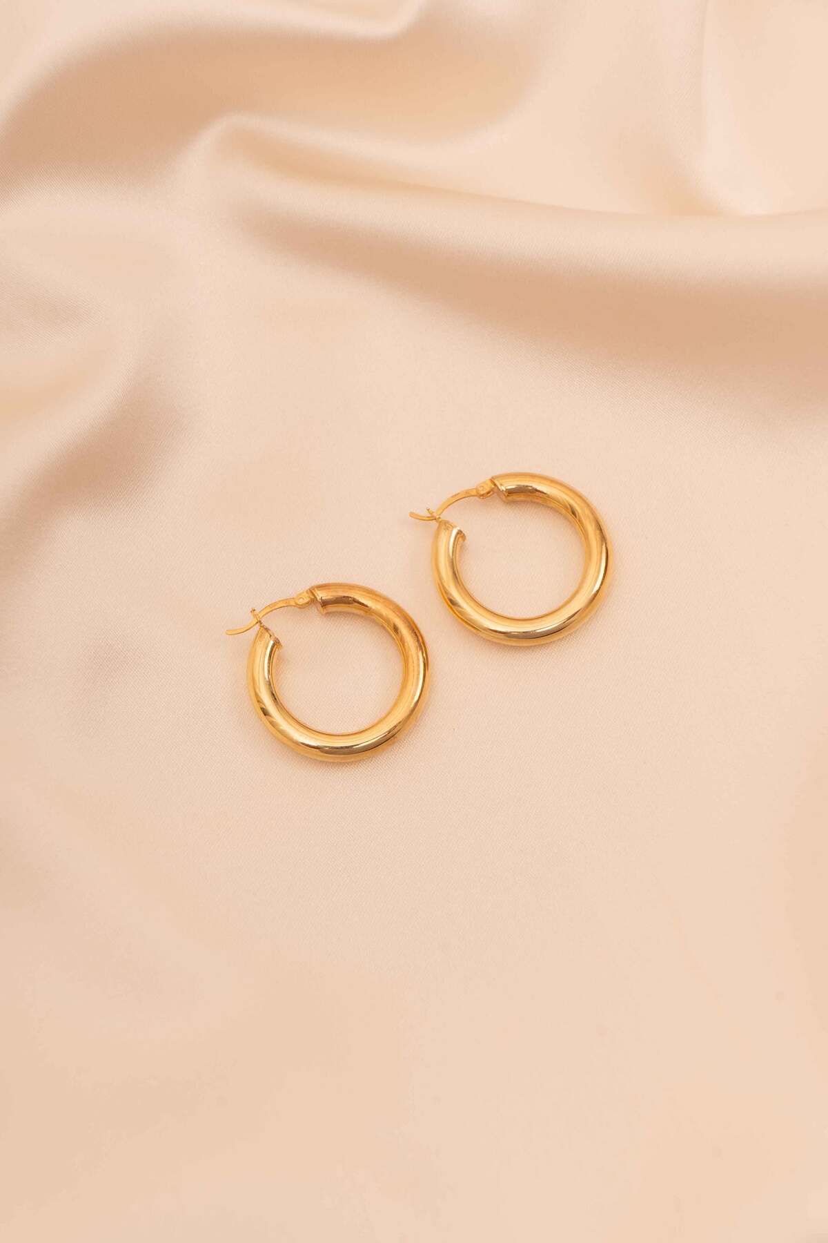 925 Ayar Gümüş Gold K aplama Büyük Halka Küpe Bombeli Halka Küpe