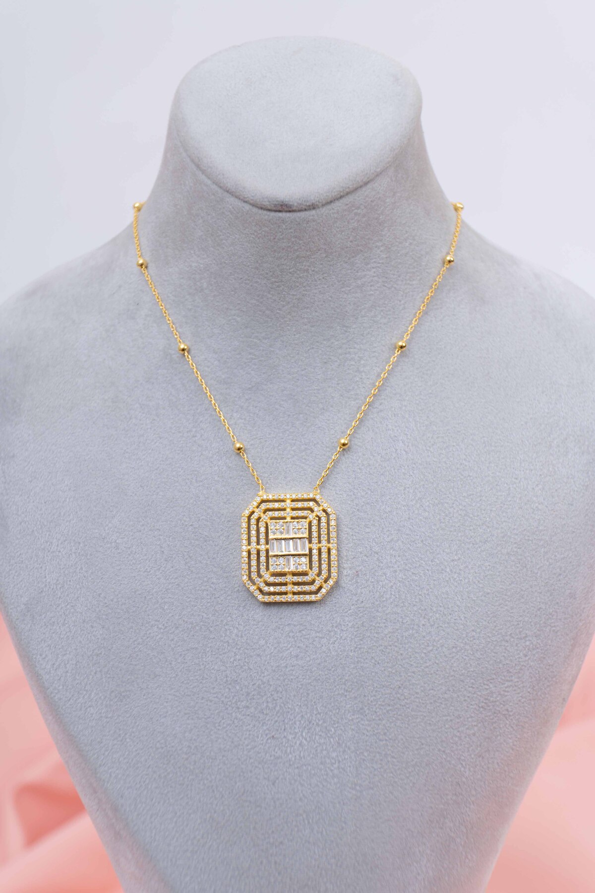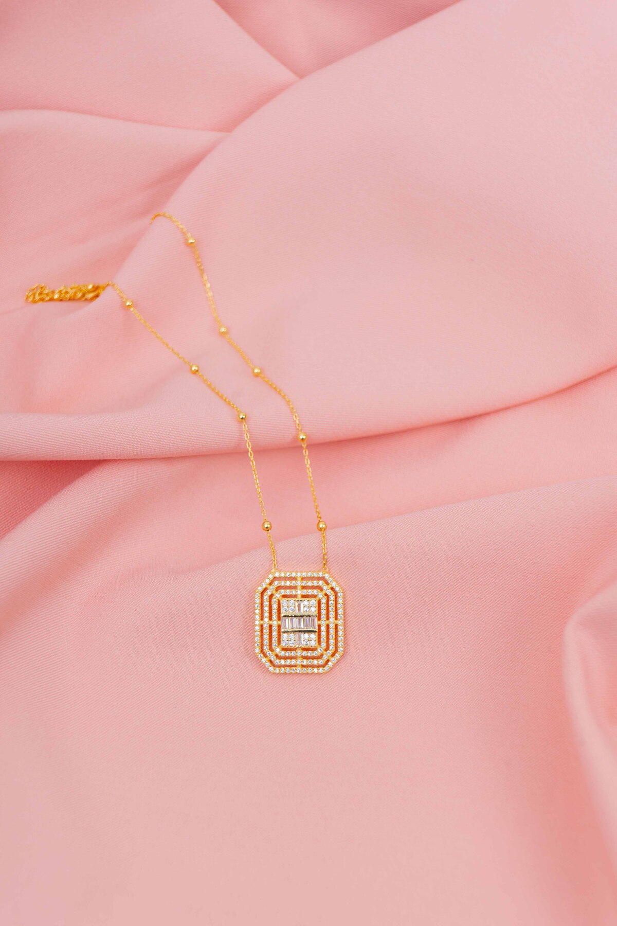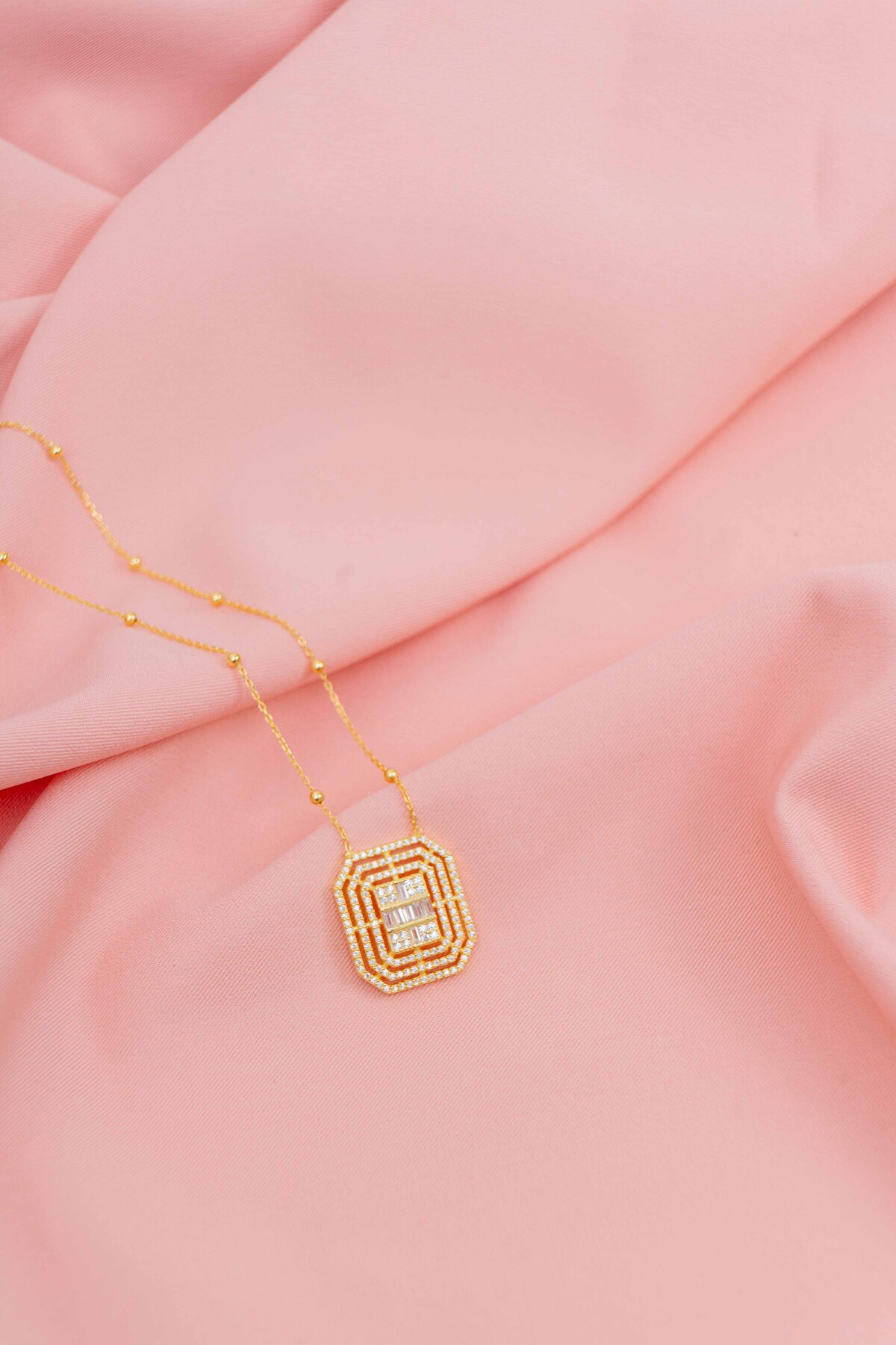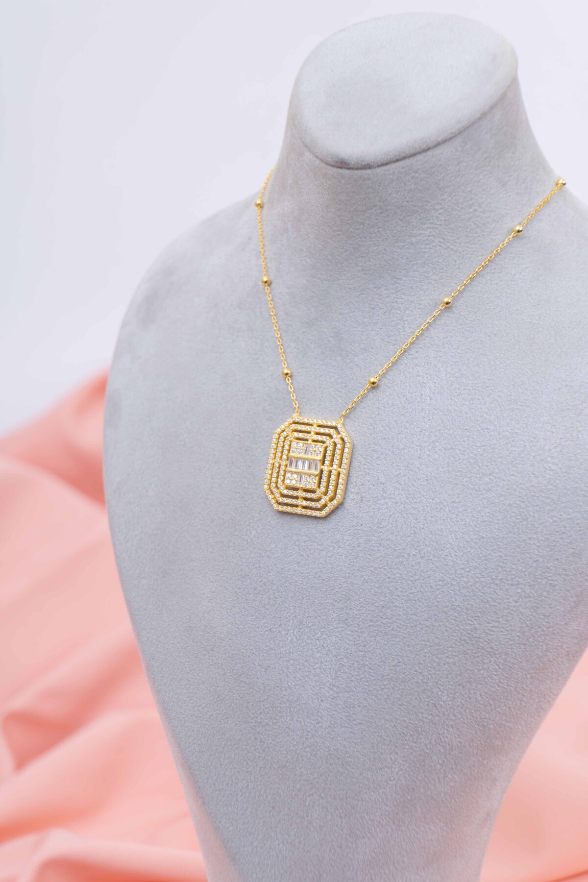 925 Ayar Gümüş Gold Kaplama Baget Taşlı Kolye Pırlanta Görünümlü Kolye Serenay Kolyesi