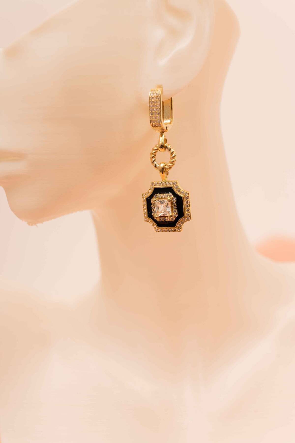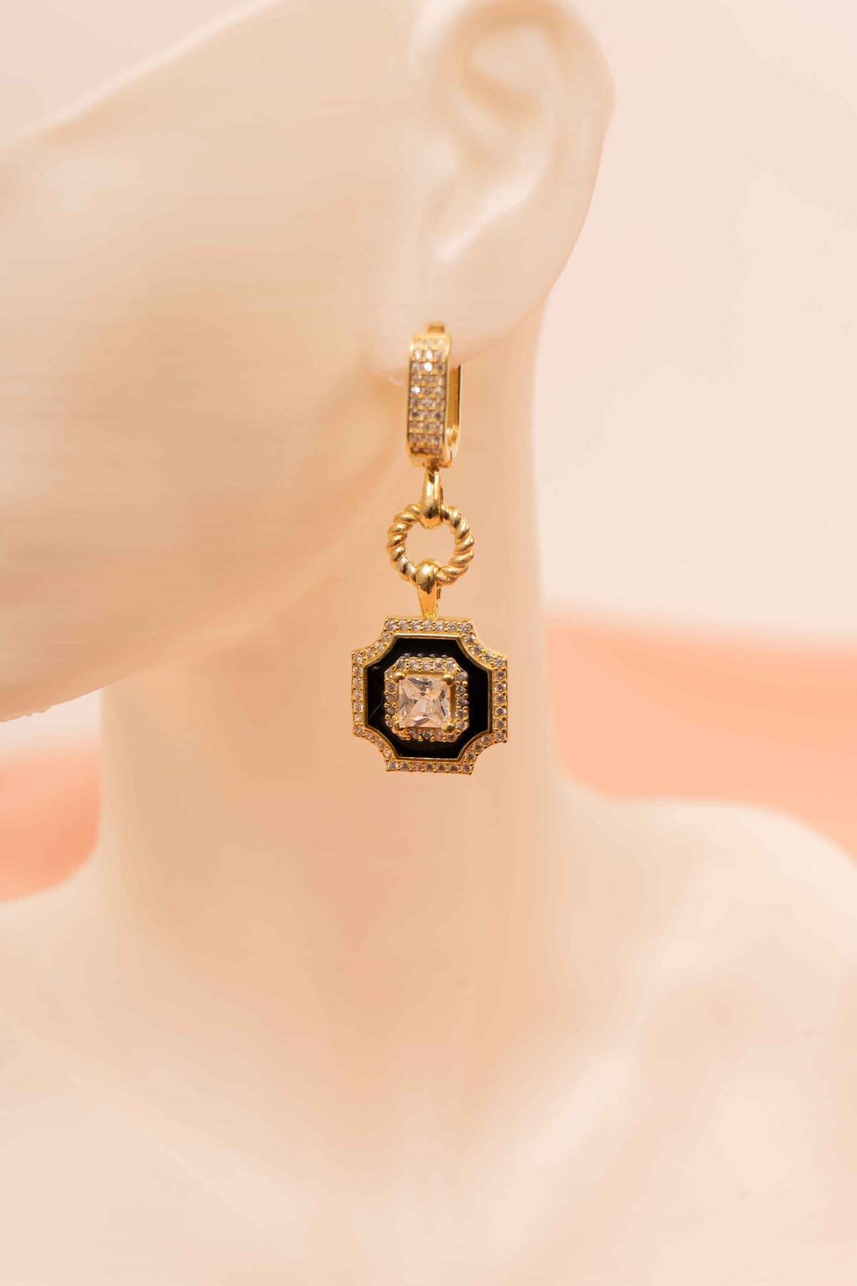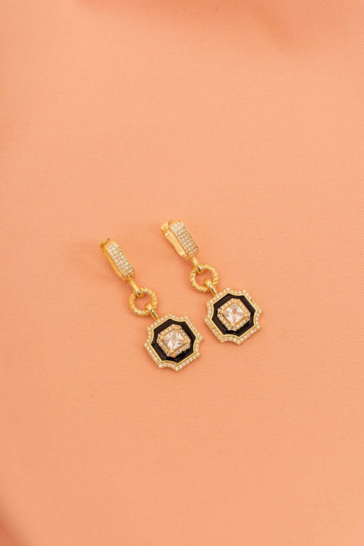 925 Ayar Gümüş Gold Kaplama Vintage Model Küpe Zirkon Taşlı Sallantılı Büyük Küpe