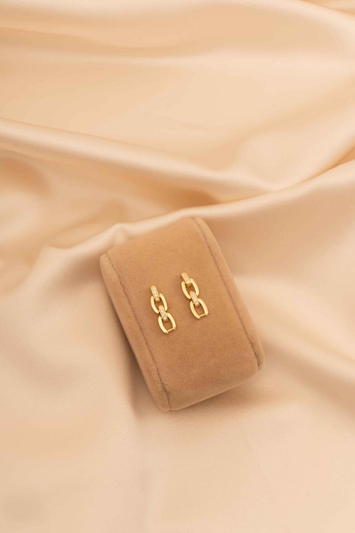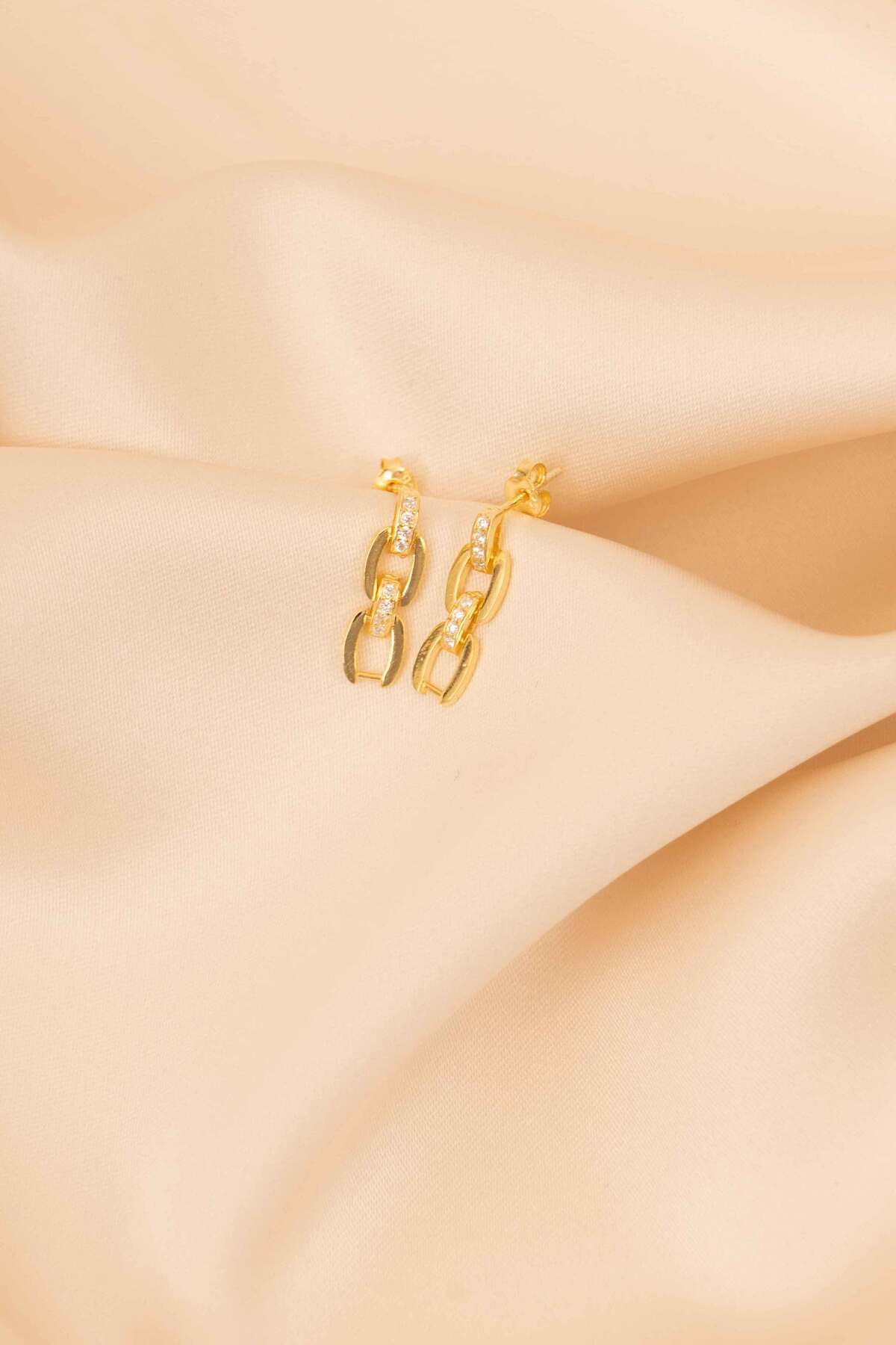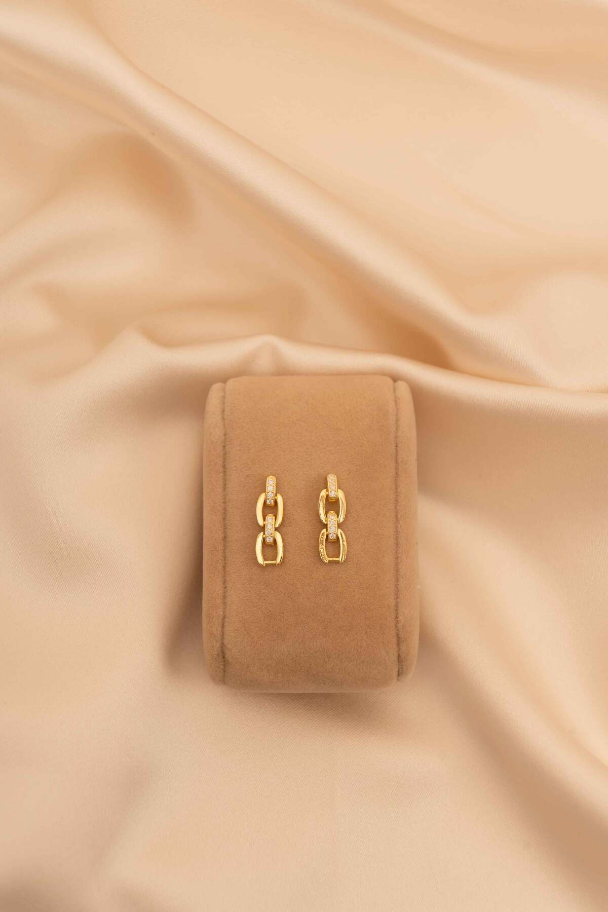 925 Ayar Gümüş Sallantılı Zincir K üpe Gold Kaplama Küpe Zirkon Taşlı Sallantılı Küpe