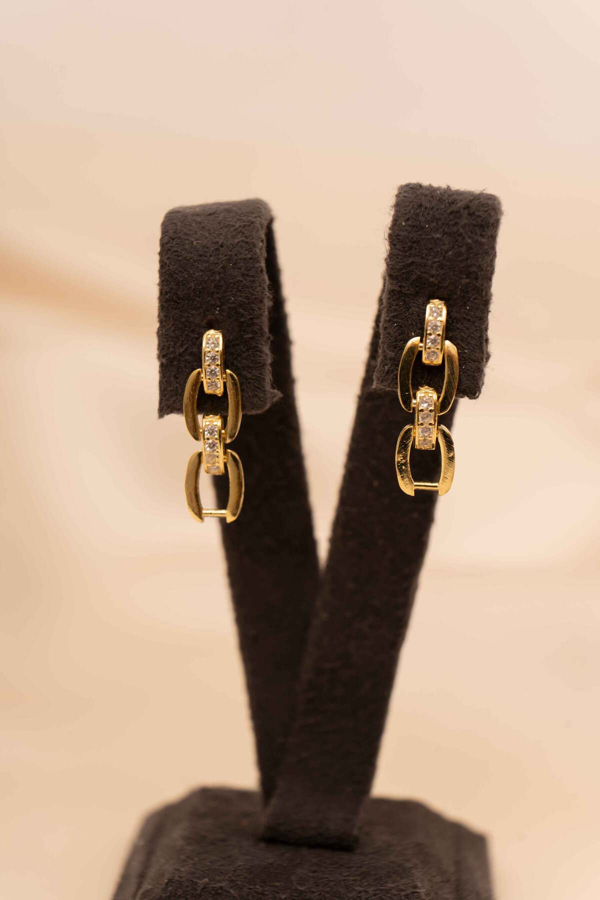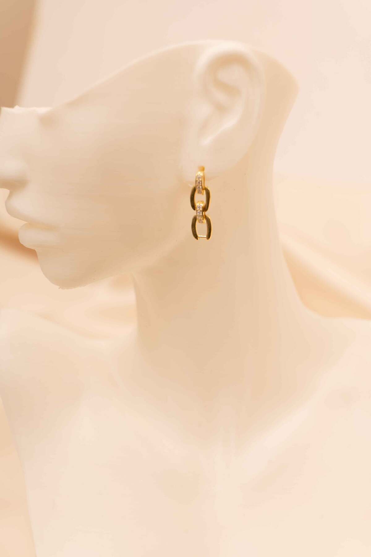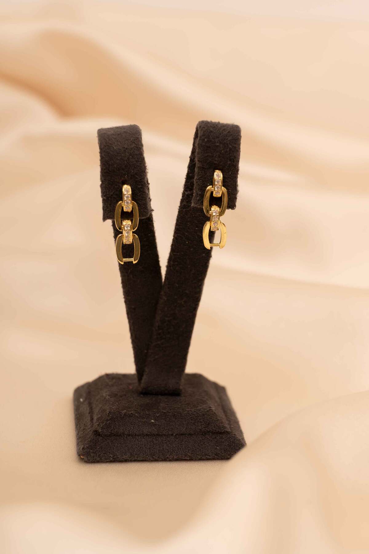 925 Ayar Gümüş Sallantılı Zincir K üpe Gold Kaplama Küpe Zirkon Taşlı Sallantılı Küpe