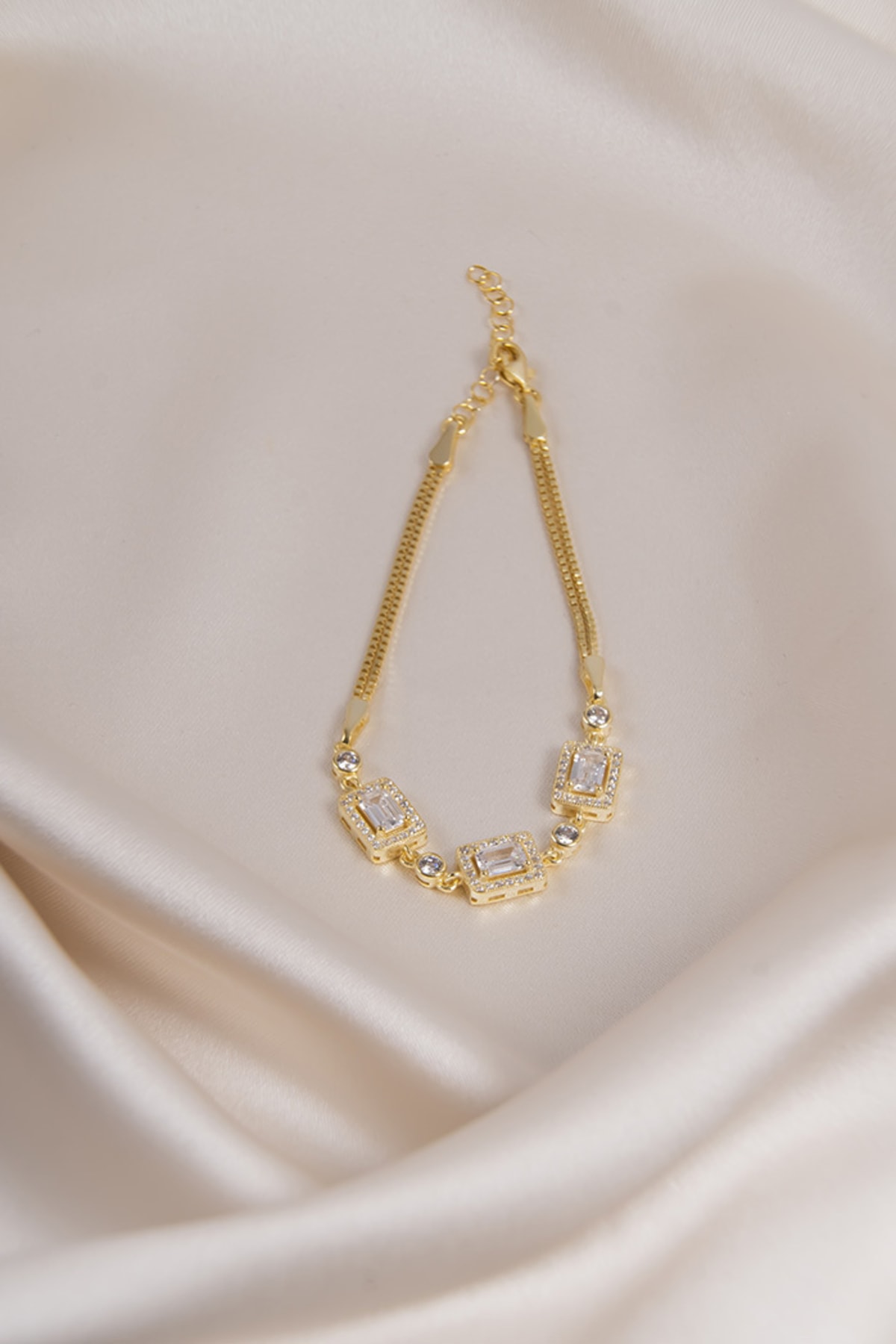 Baget Taşlı Pırlanta Görünümlü Bileklik Gold Kaplama 925 Ayar Gümüş