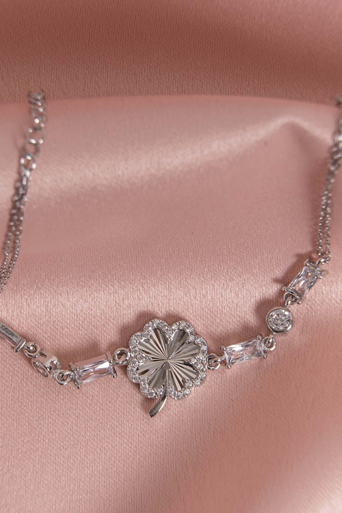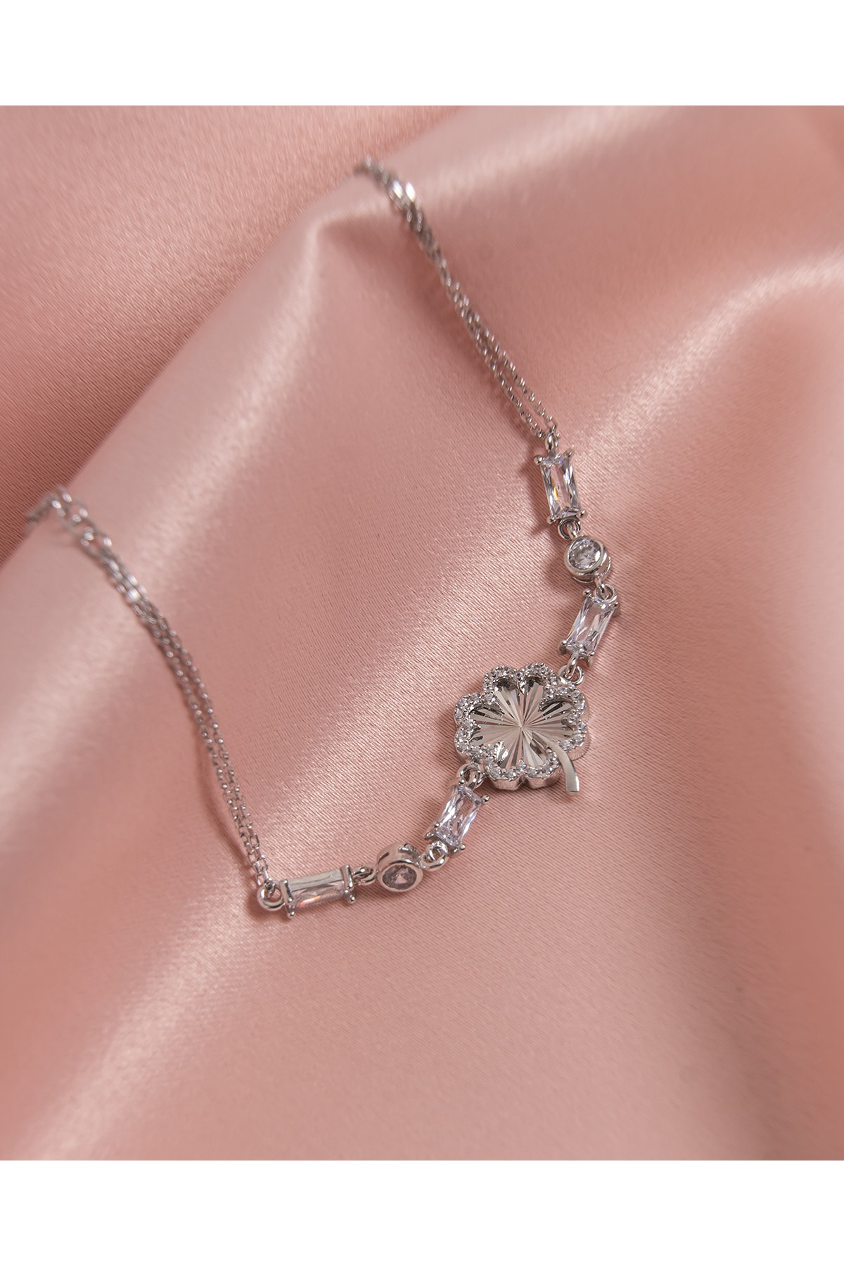 Baget Taşlı Yoncalı Bileklik Silver 925 Ayar Gümüş