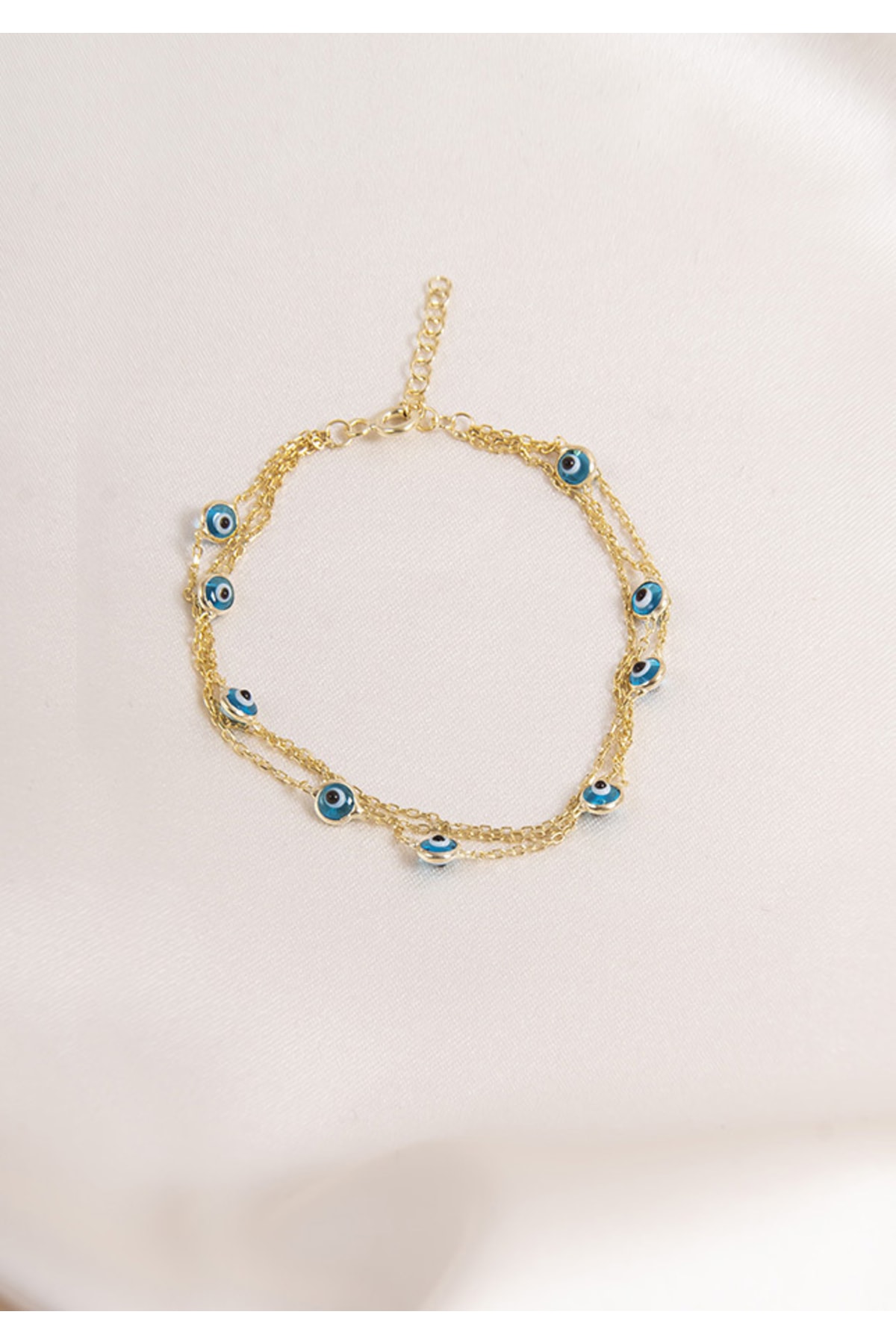 Cam Göz Nazar Boncuklu Gümüş Bileklik Gold Kaplama 926 Ayar Gümüş