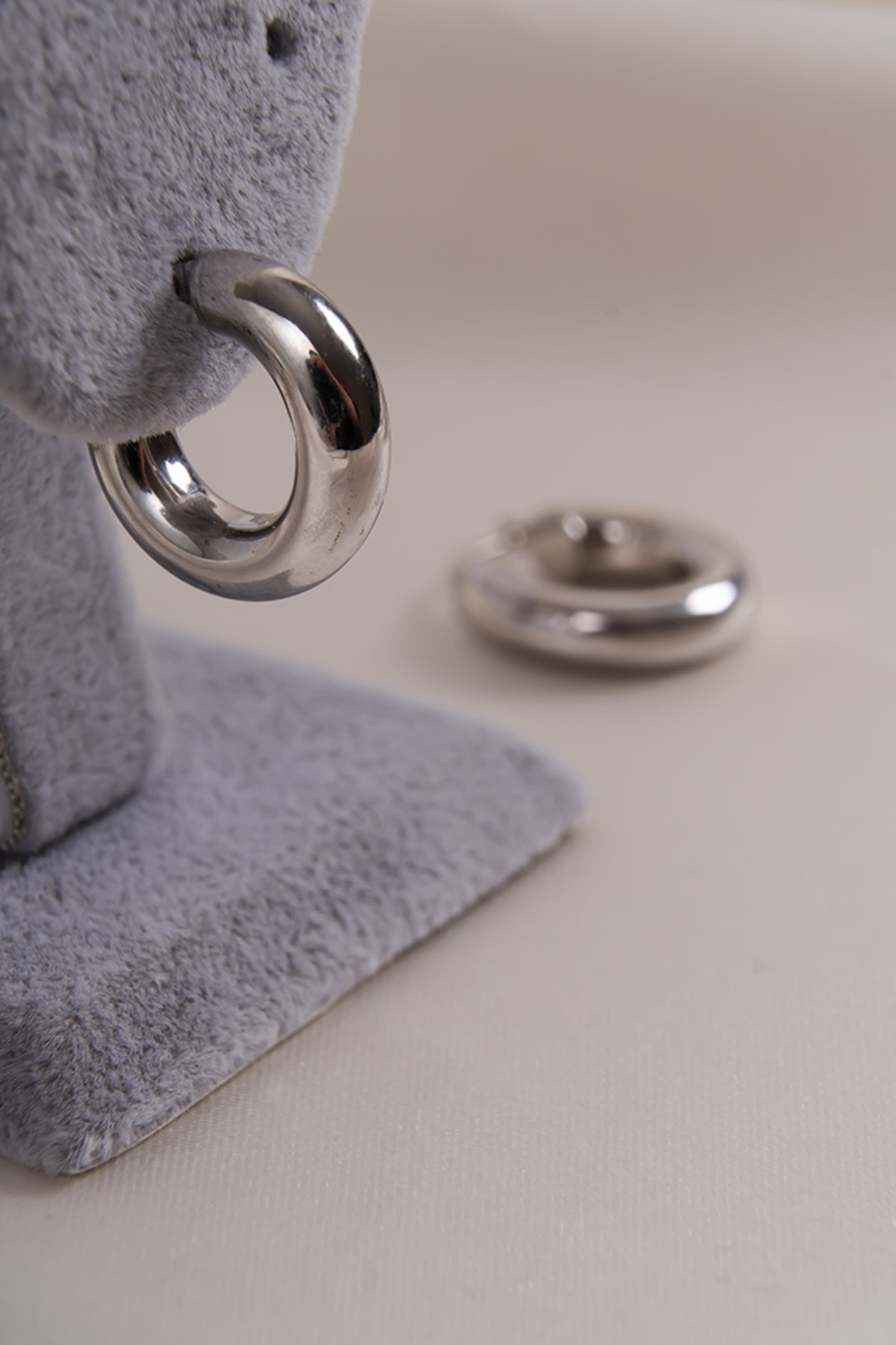 Hafif Bombeli Küçük Gümüş Halka Küpe Silver Anti Alerjik 925 Ayar Gümüş