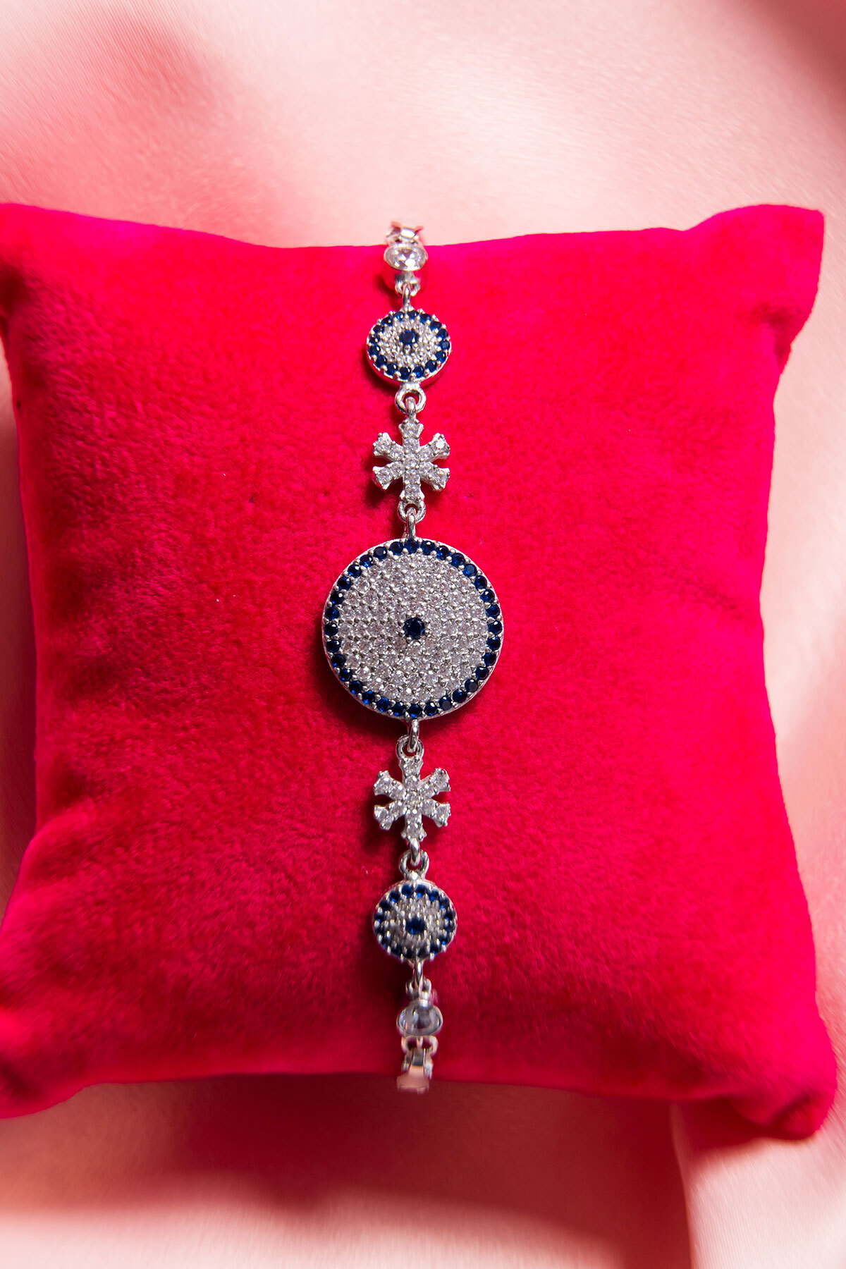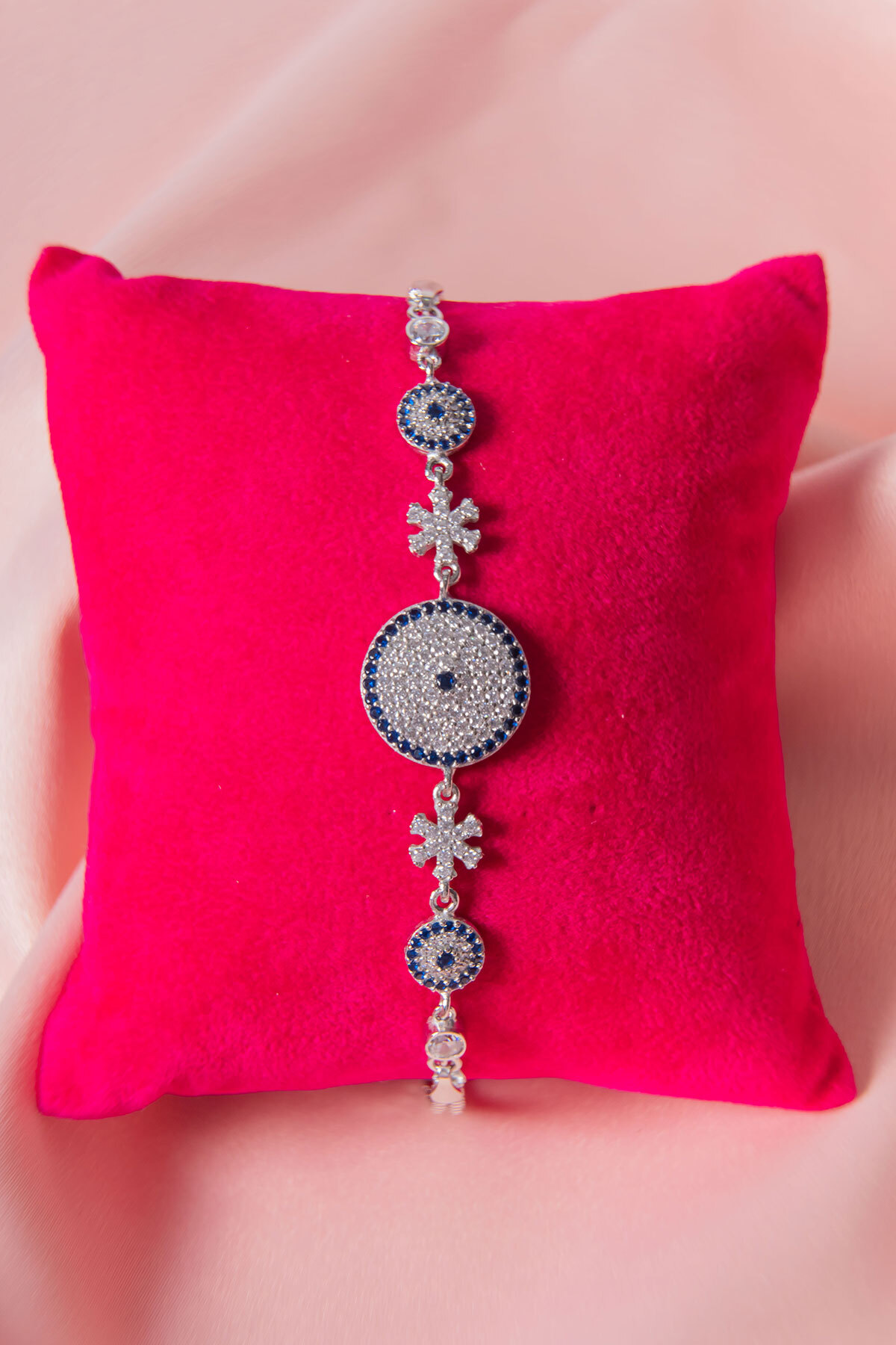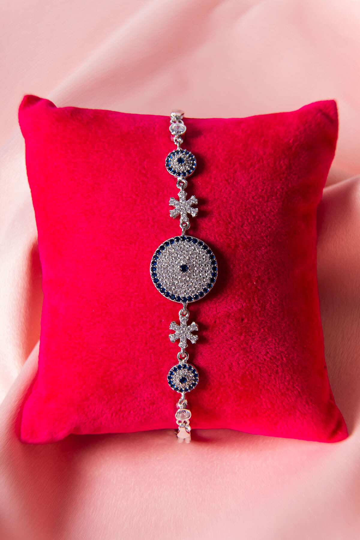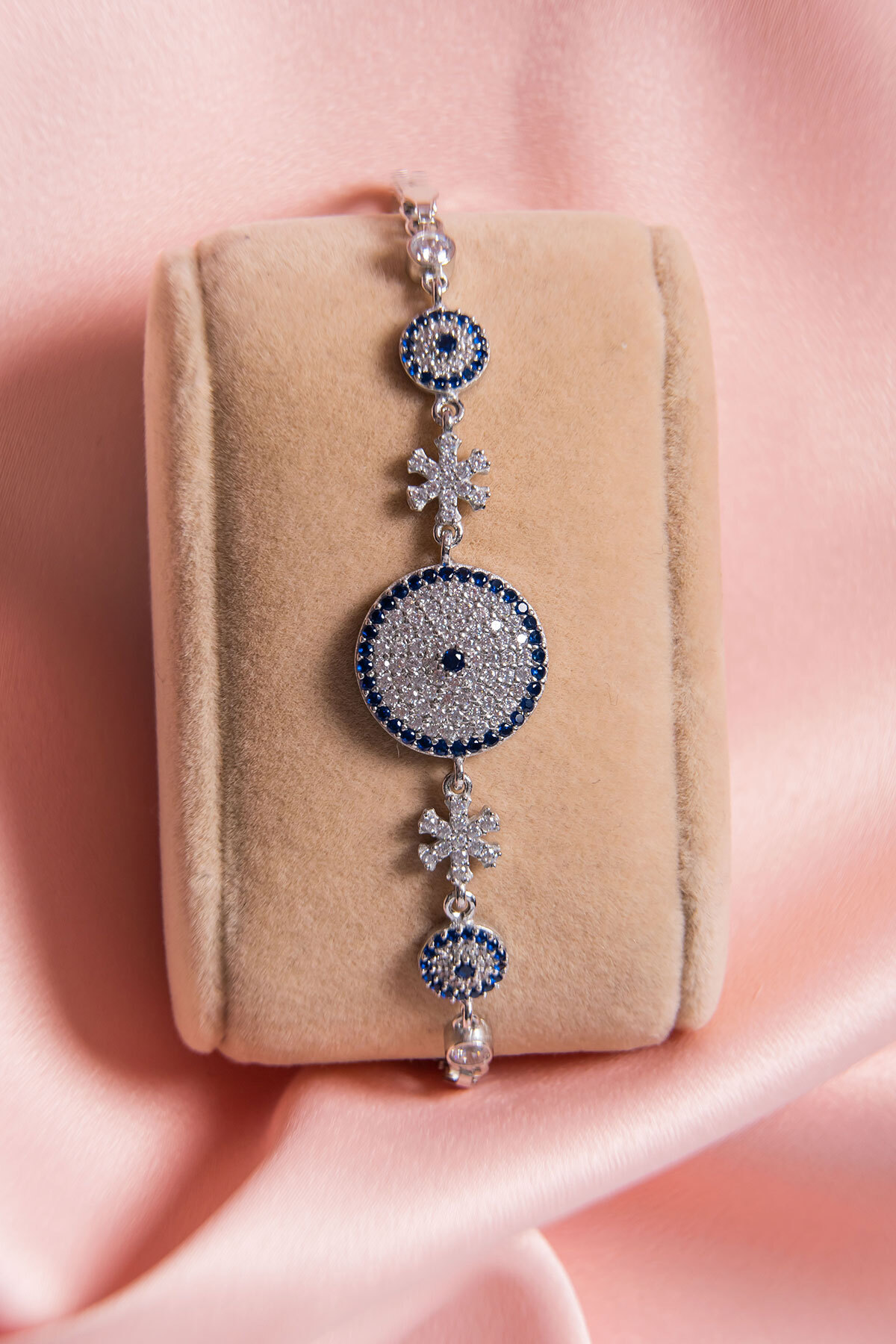Kar Tanesi Detaylı Nazar Boncuklu Bileklik Silver 925 Ayar Gümüş