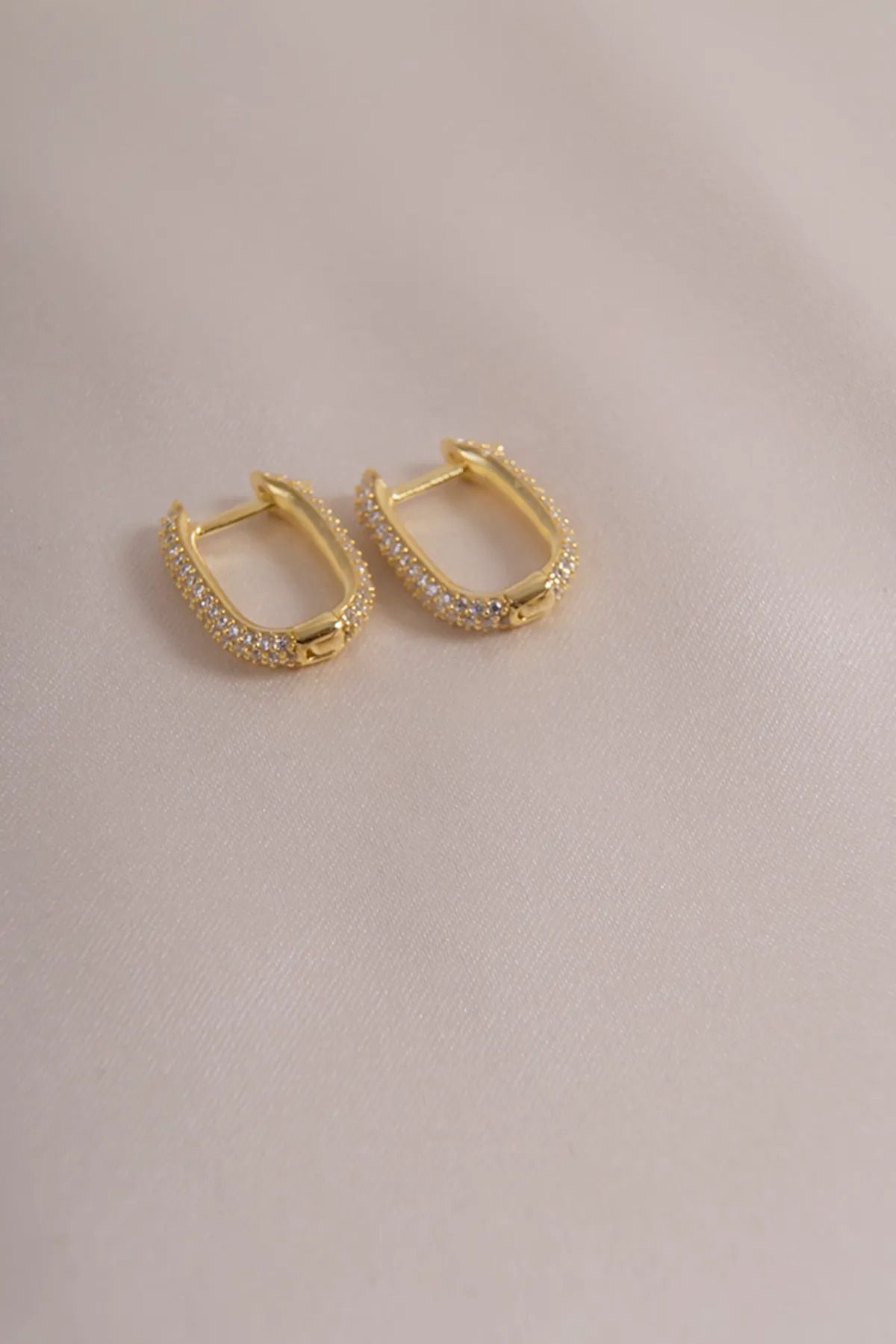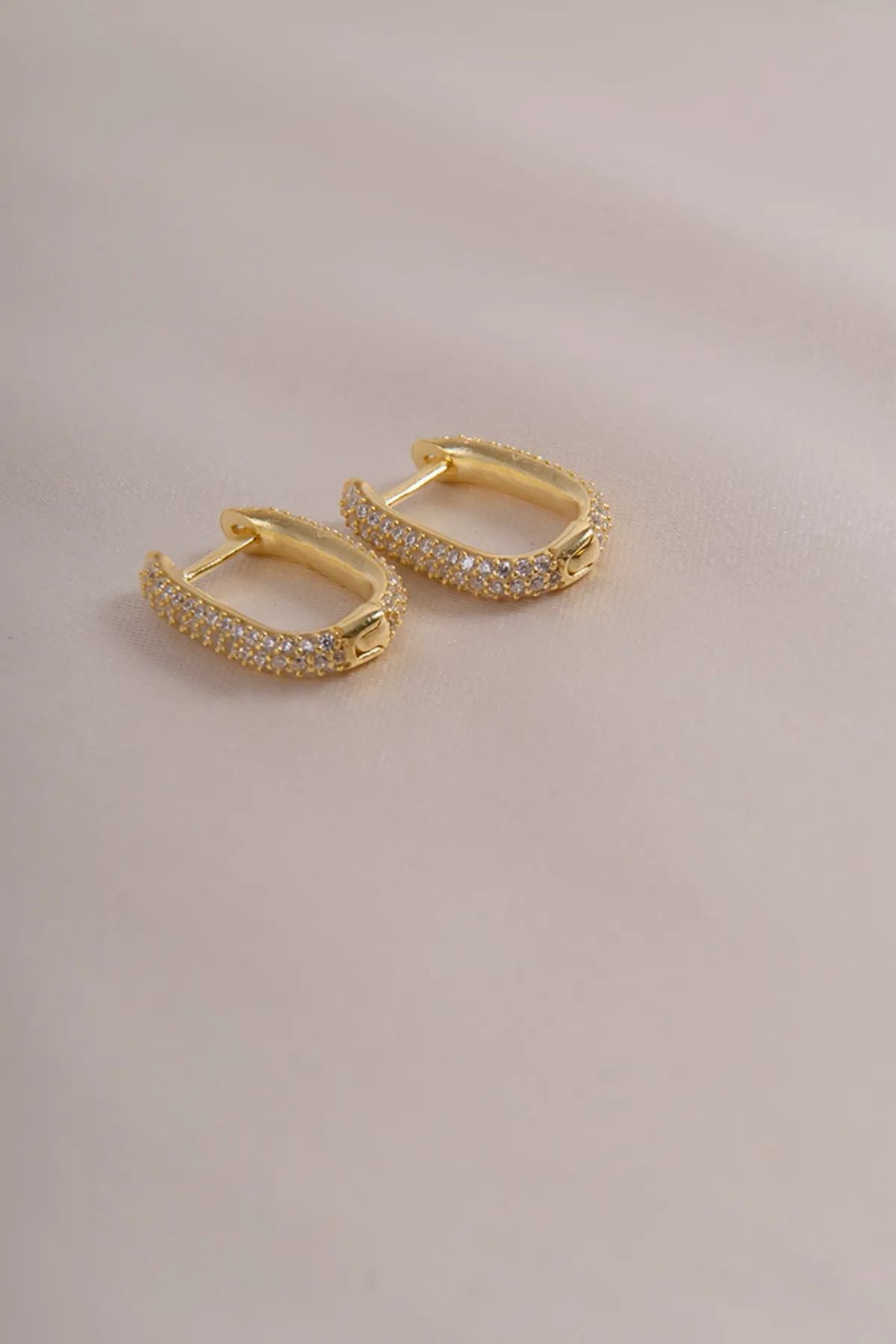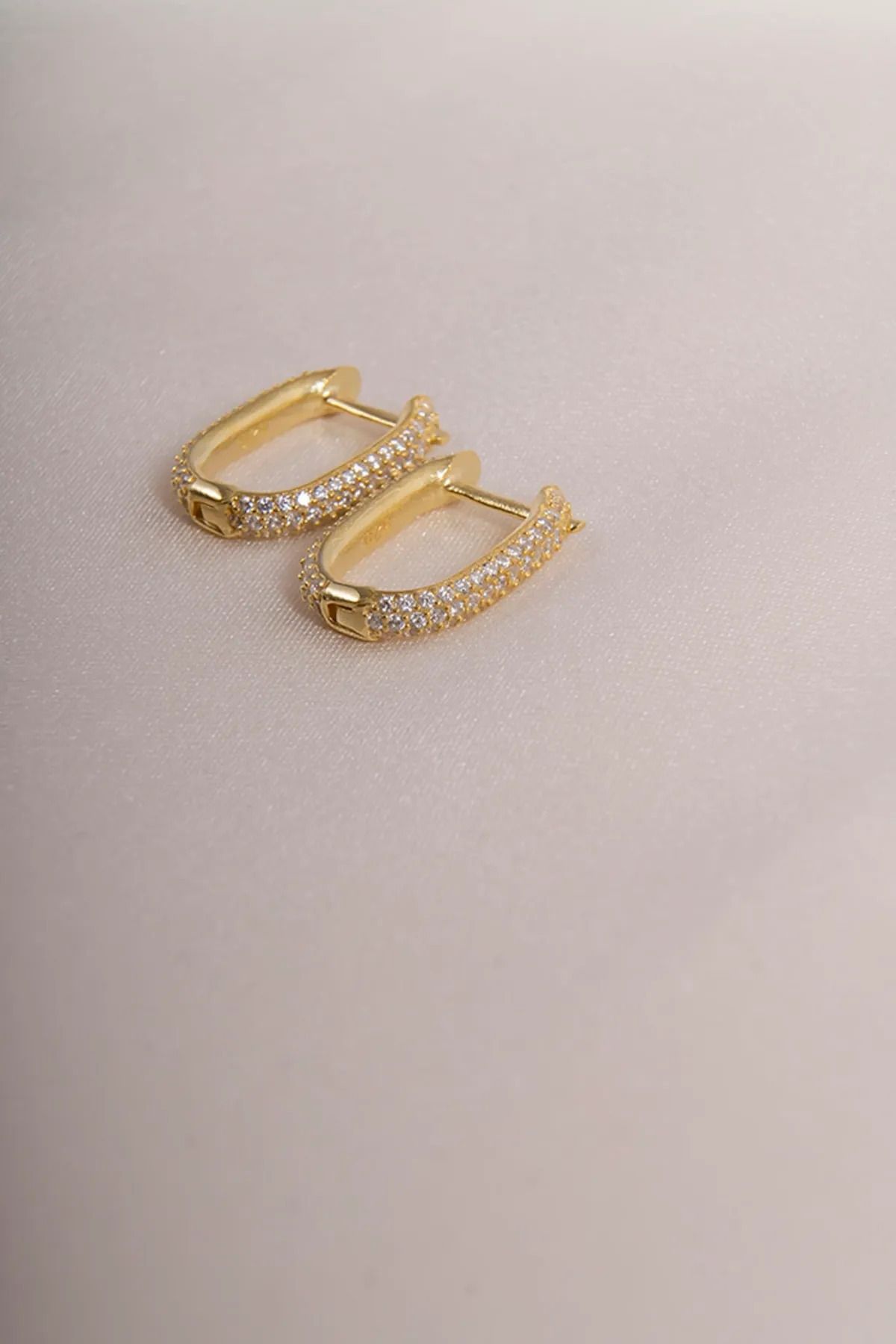 KOPYA – Zirkon Taşlı Oval Küçük Halka Küpe Gold Kaplama Anti Alerjik 925 Ayar Gümüş