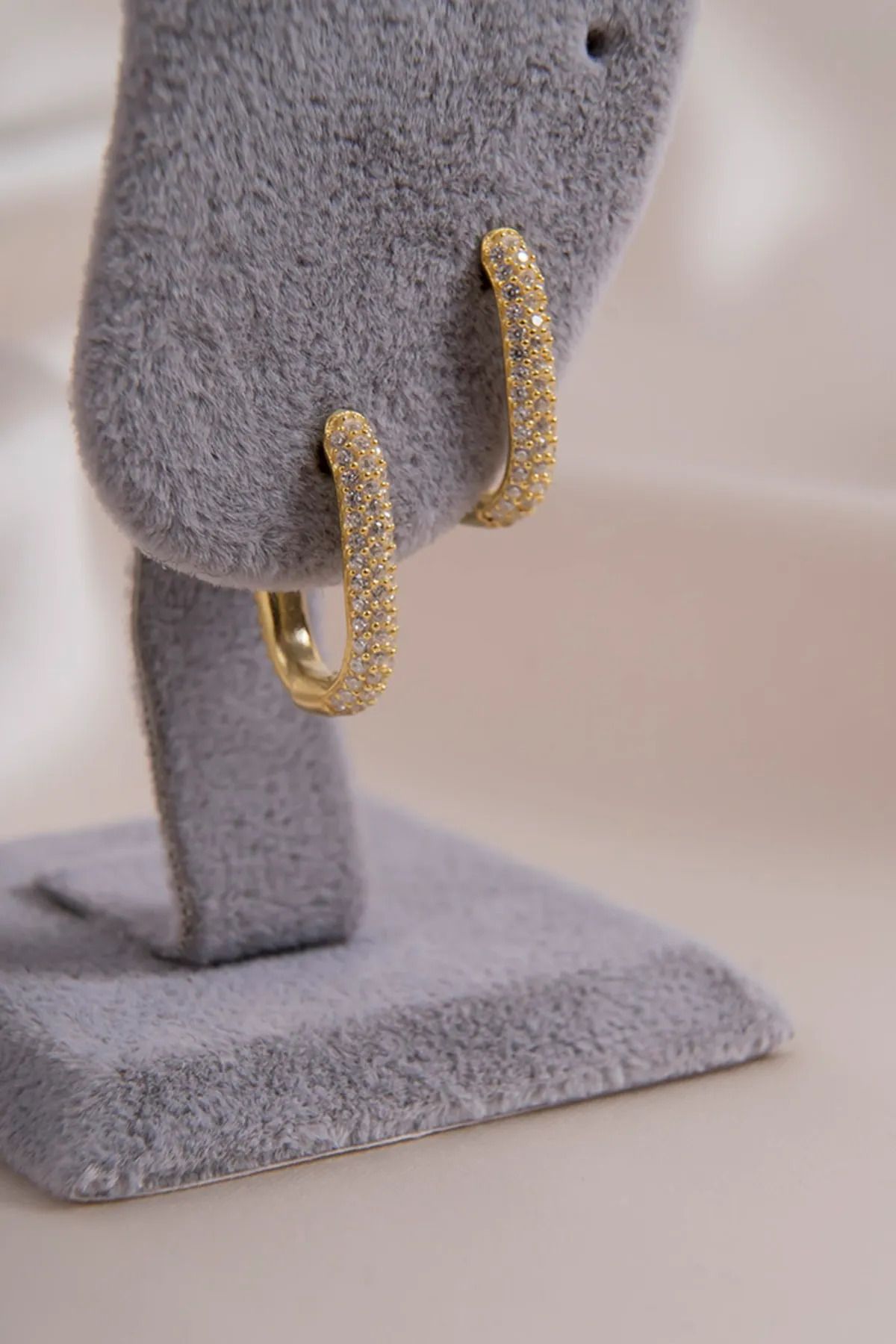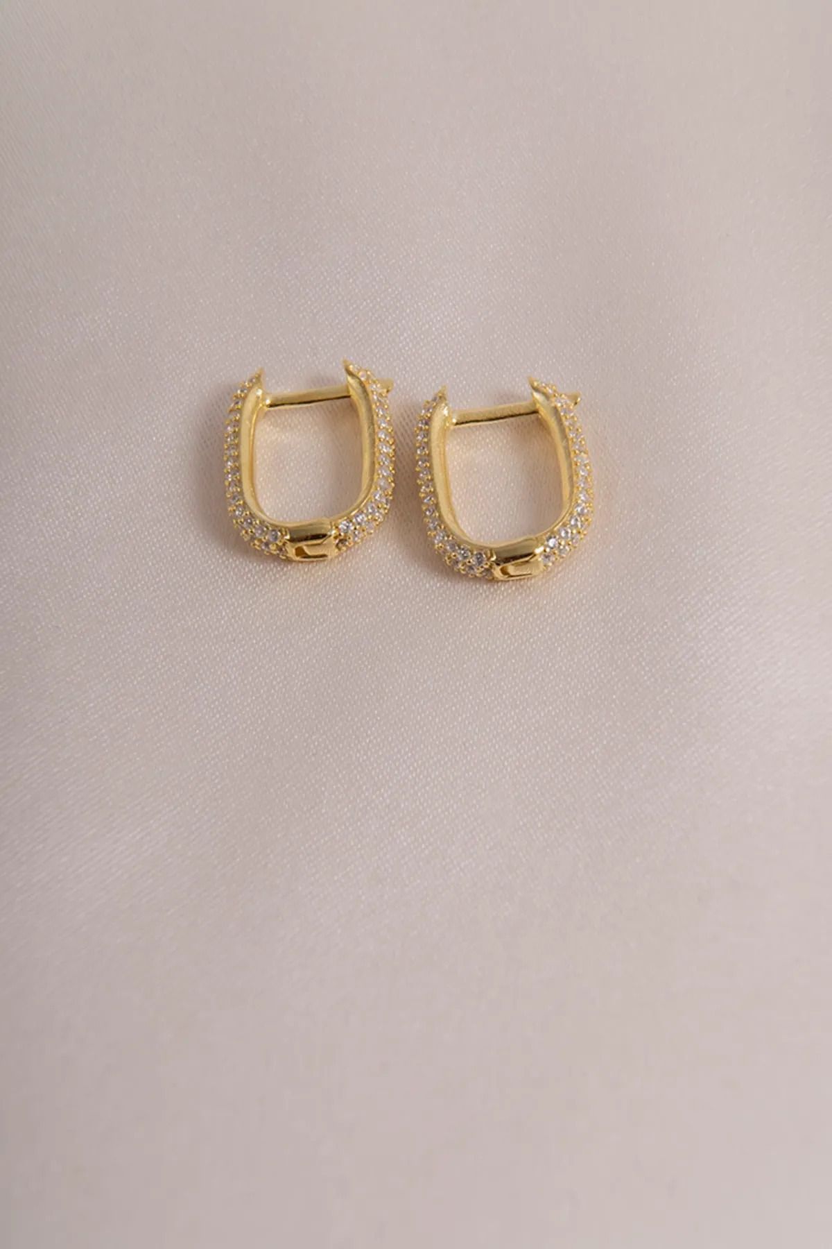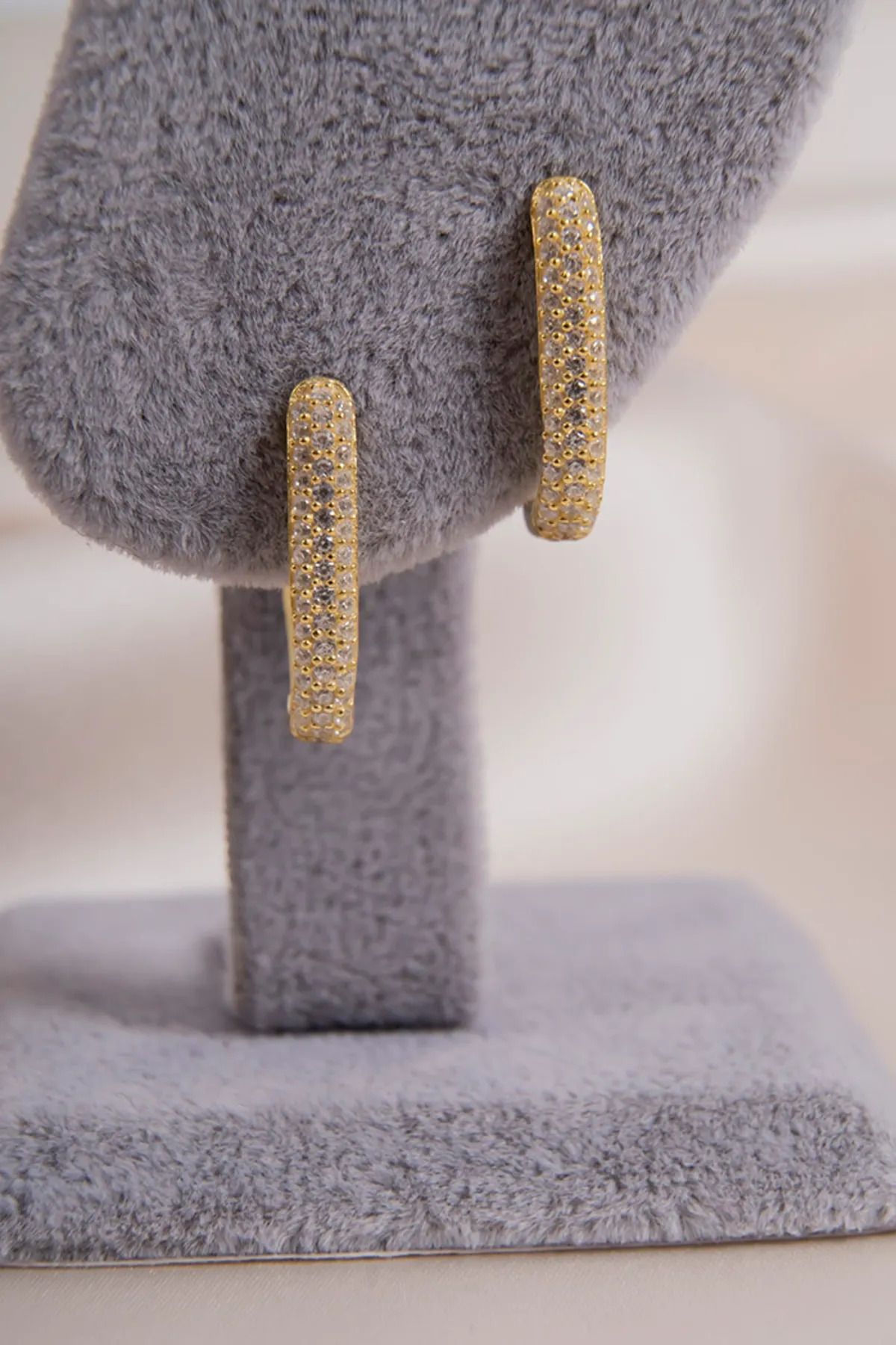 KOPYA – Zirkon Taşlı Oval Küçük Halka Küpe Gold Kaplama Anti Alerjik 925 Ayar Gümüş
