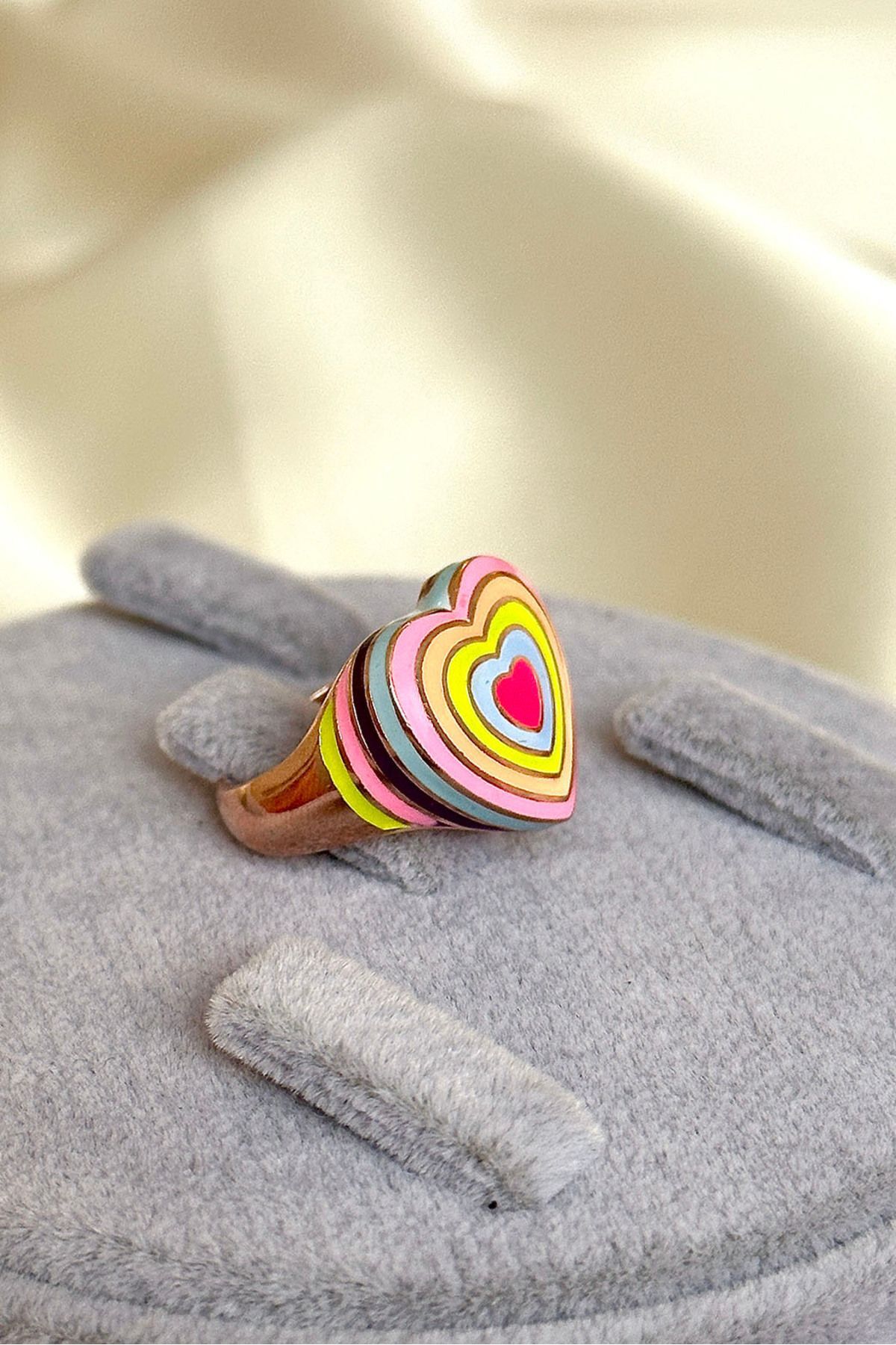 Renkli Mineli Kalp Yüzük 925 Ayar Gümüş Yüzük Gümüş Kalpli Renkli Yüzük Anti Alerjik