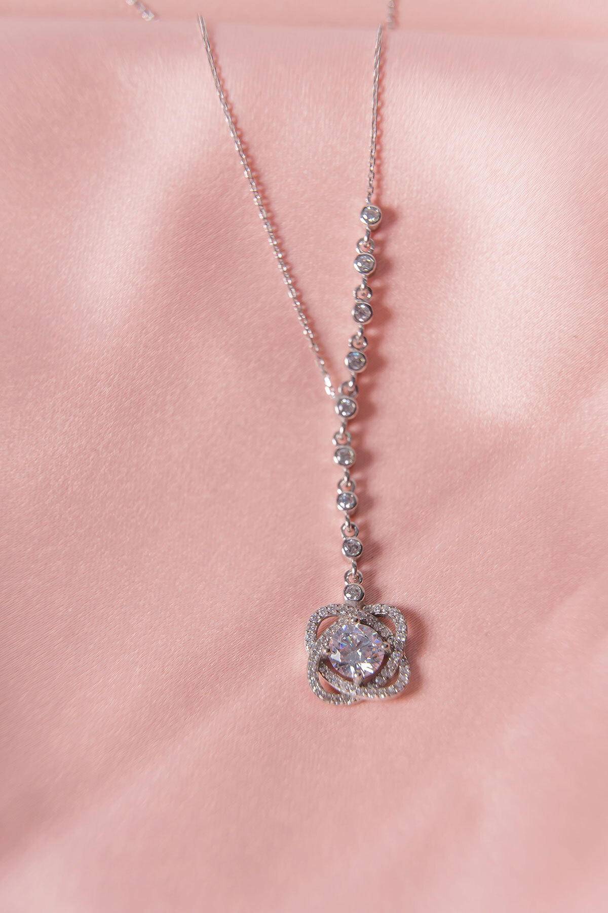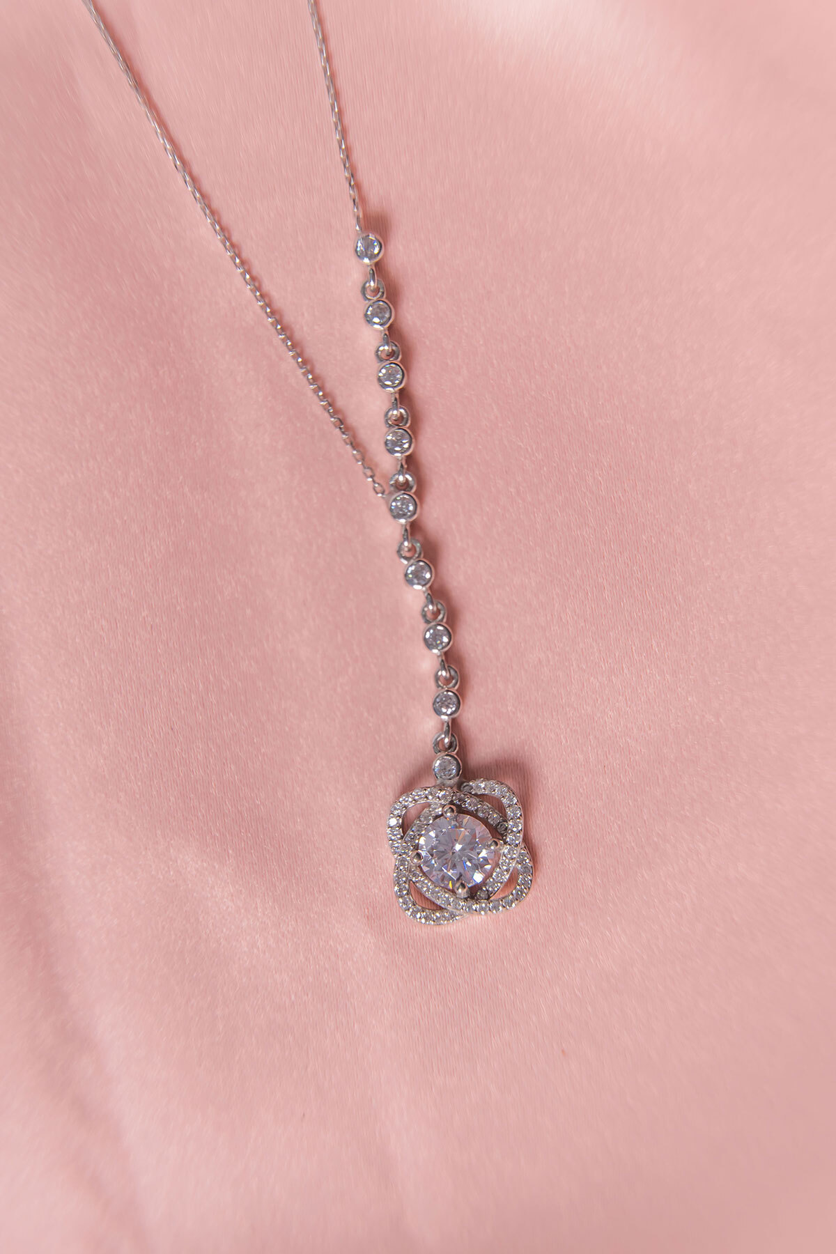 Y Model Zirkon Taşlı Tektaş Kolye Halka Detaylı Özel Seri Silver 925 Ayar Gümüş