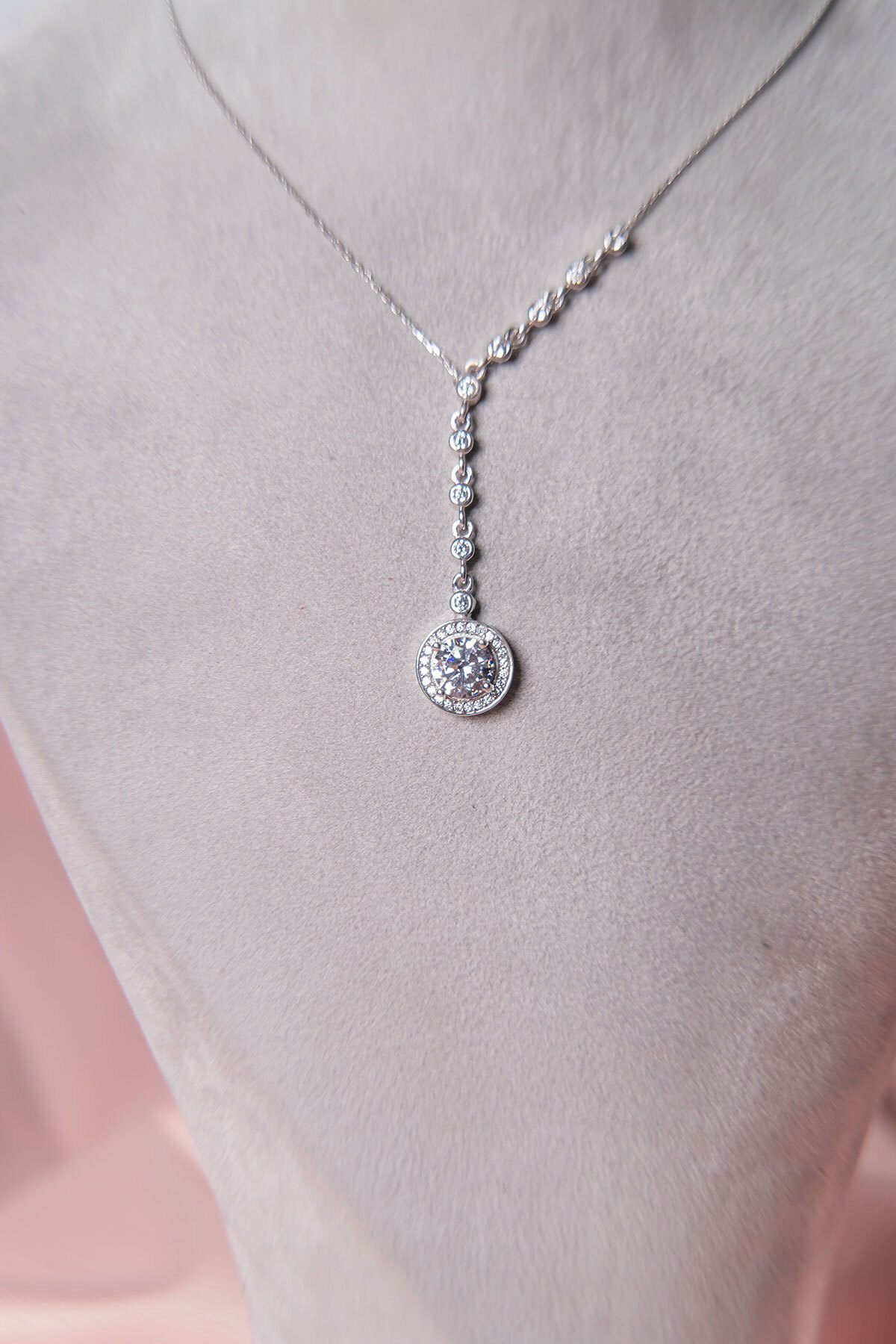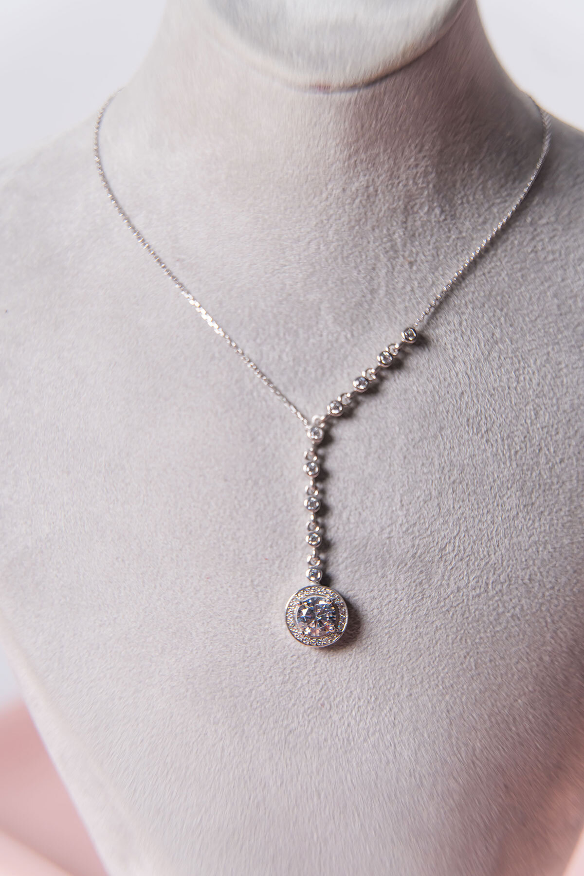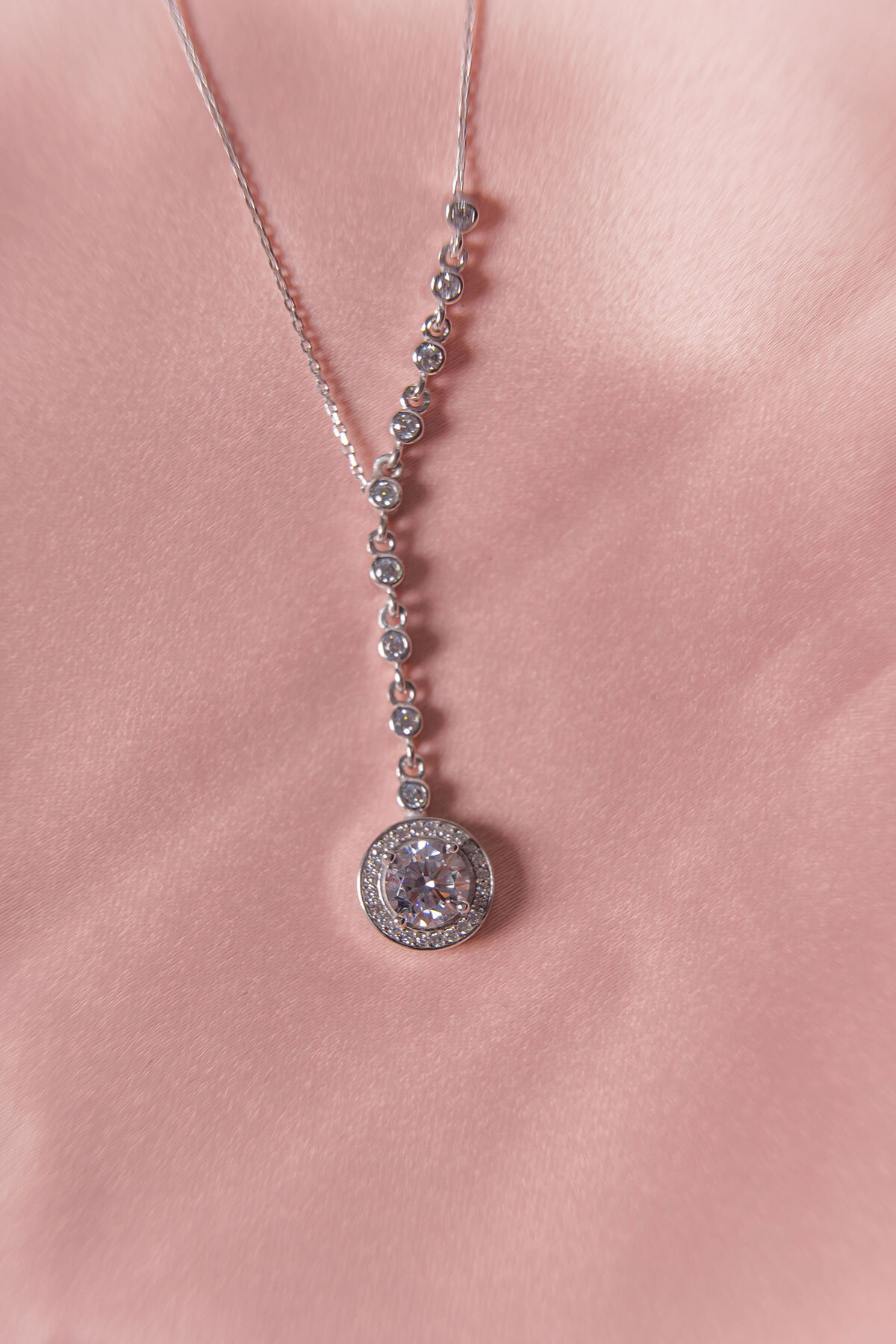Y Model Zirkon Taşlı Tektaş Kolye Özel Seri Silver 925 Ayar Gümüş
