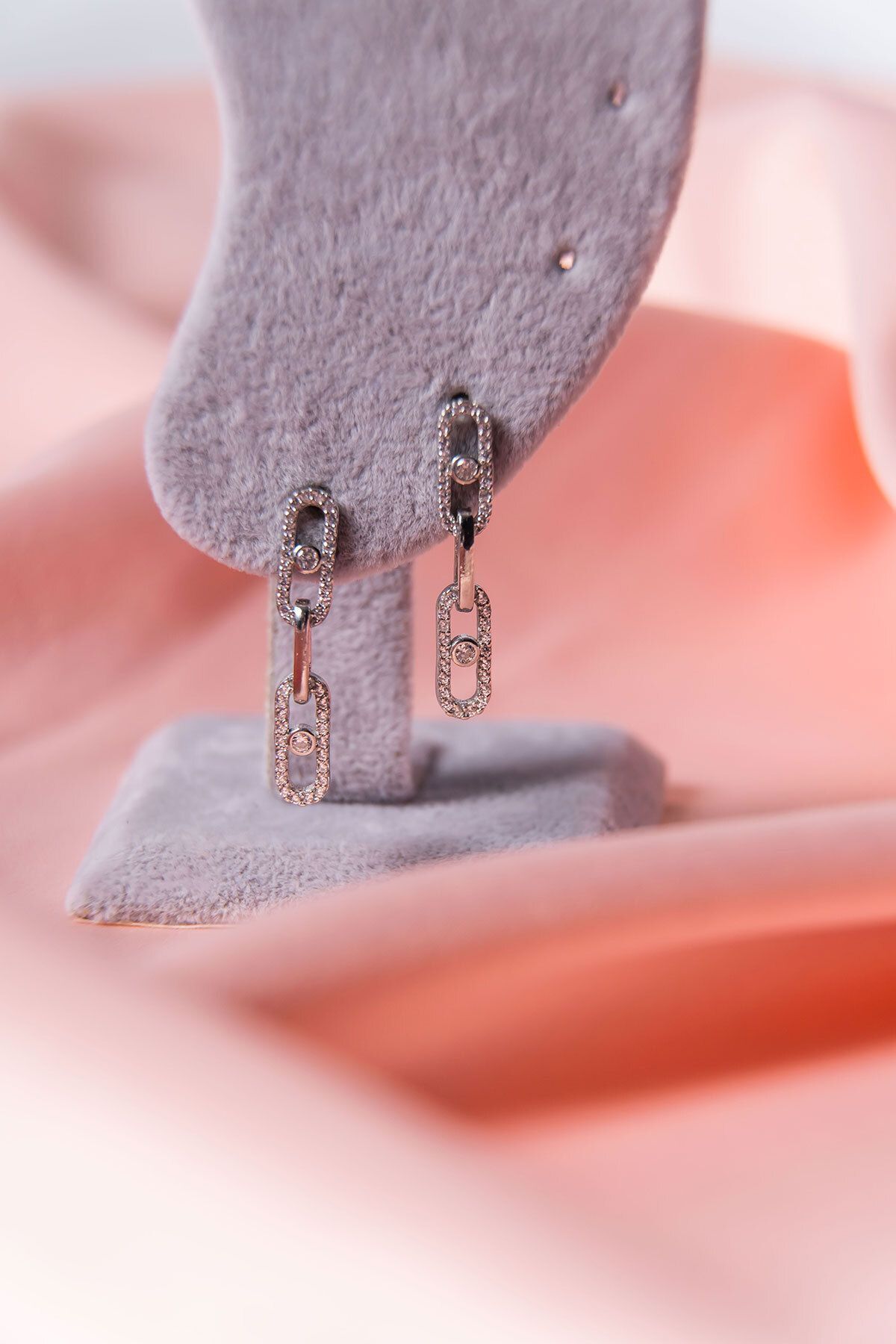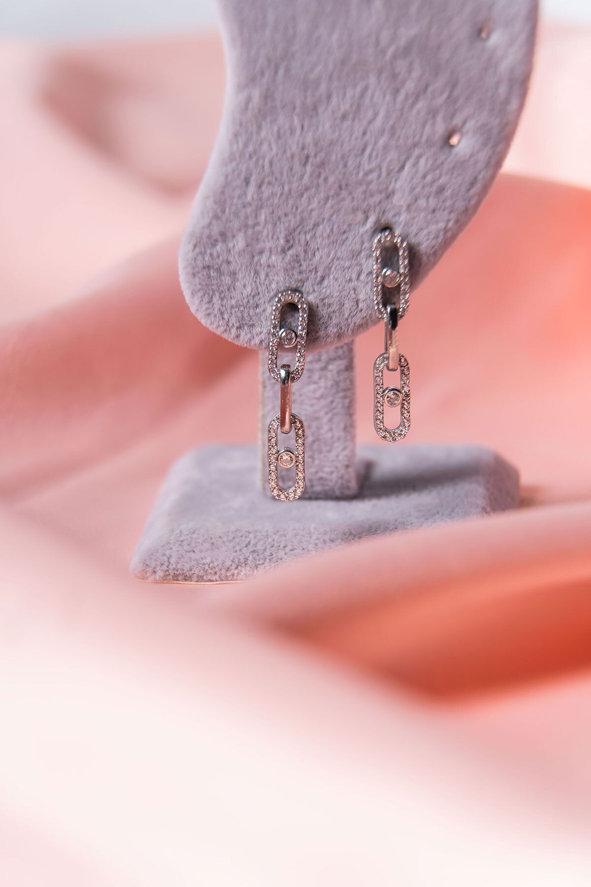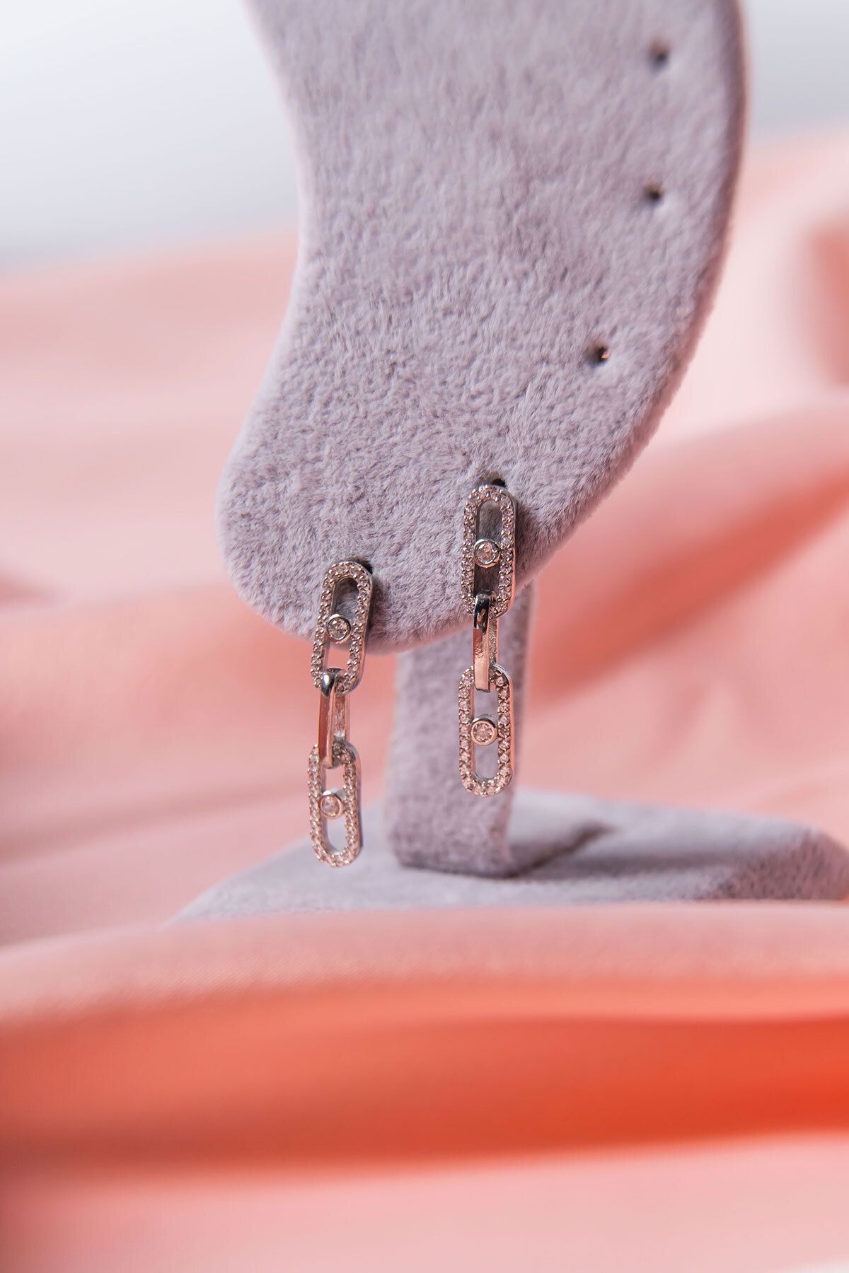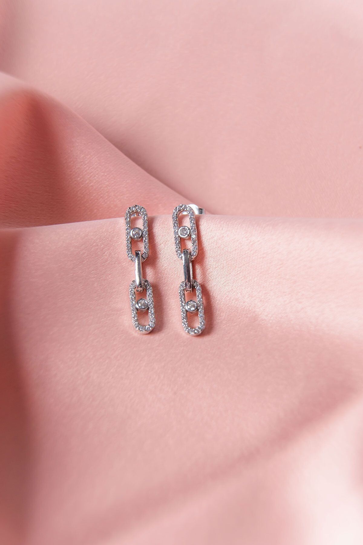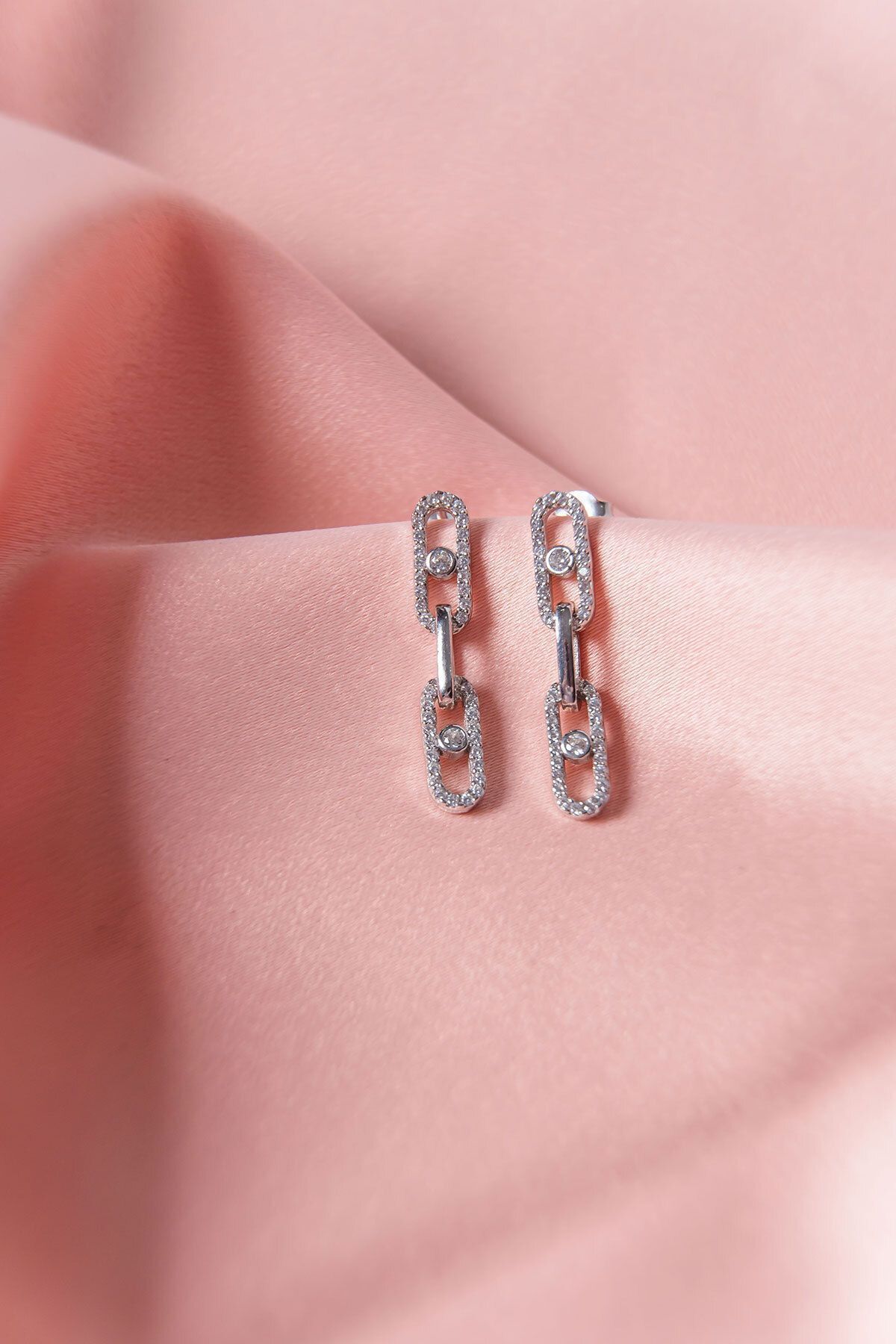 Zincir Detaylı Sallantılı Gümüş Küpe Silver 925 Ayar Gümüş