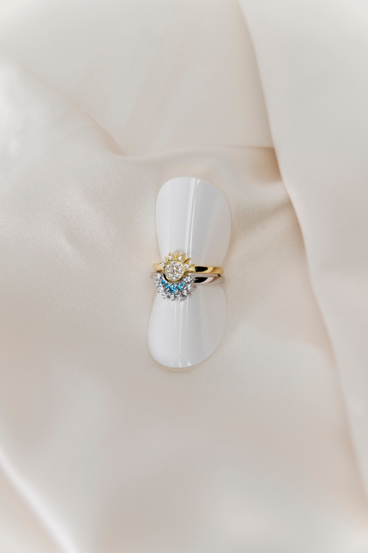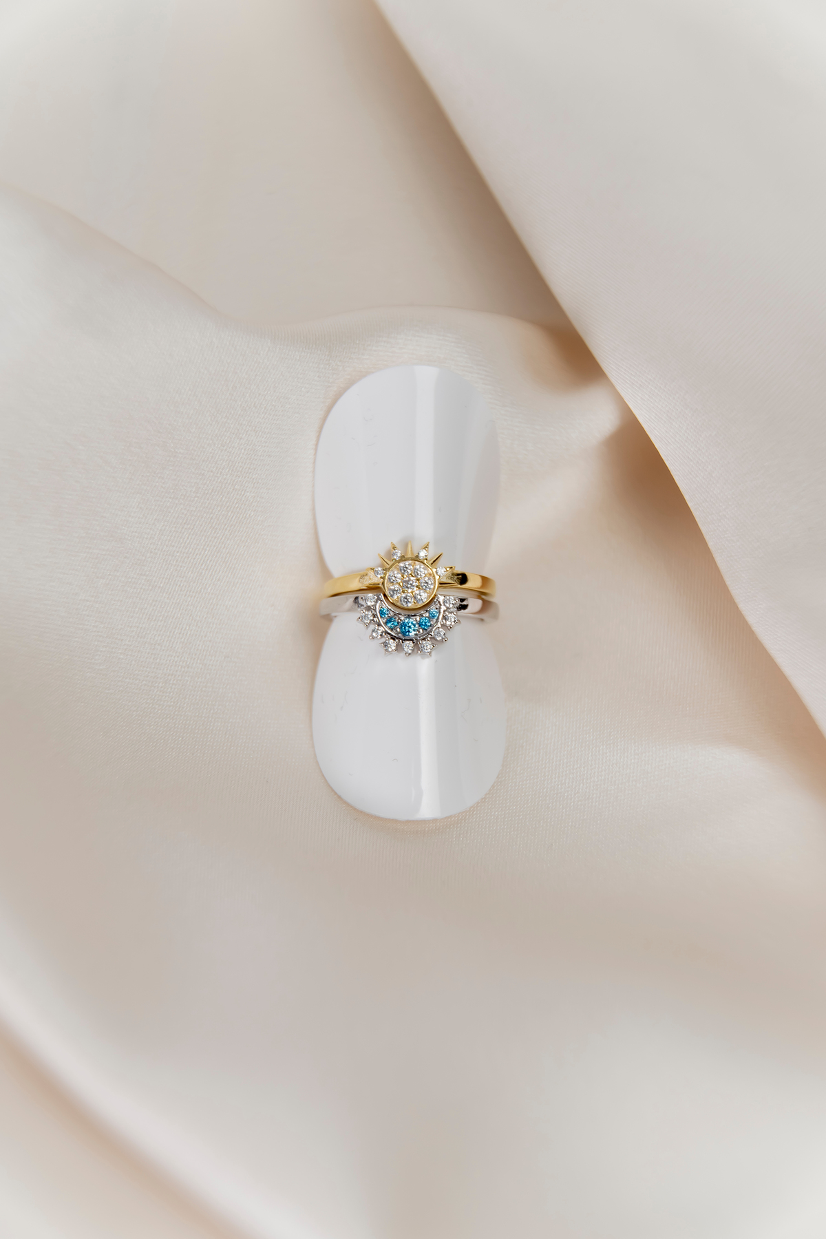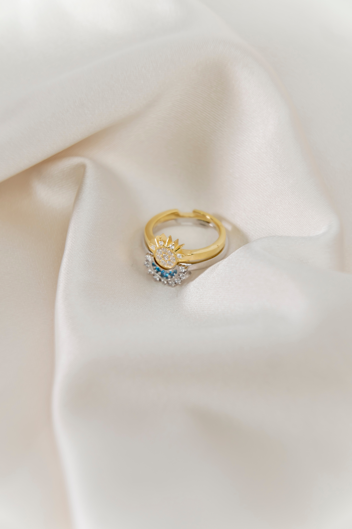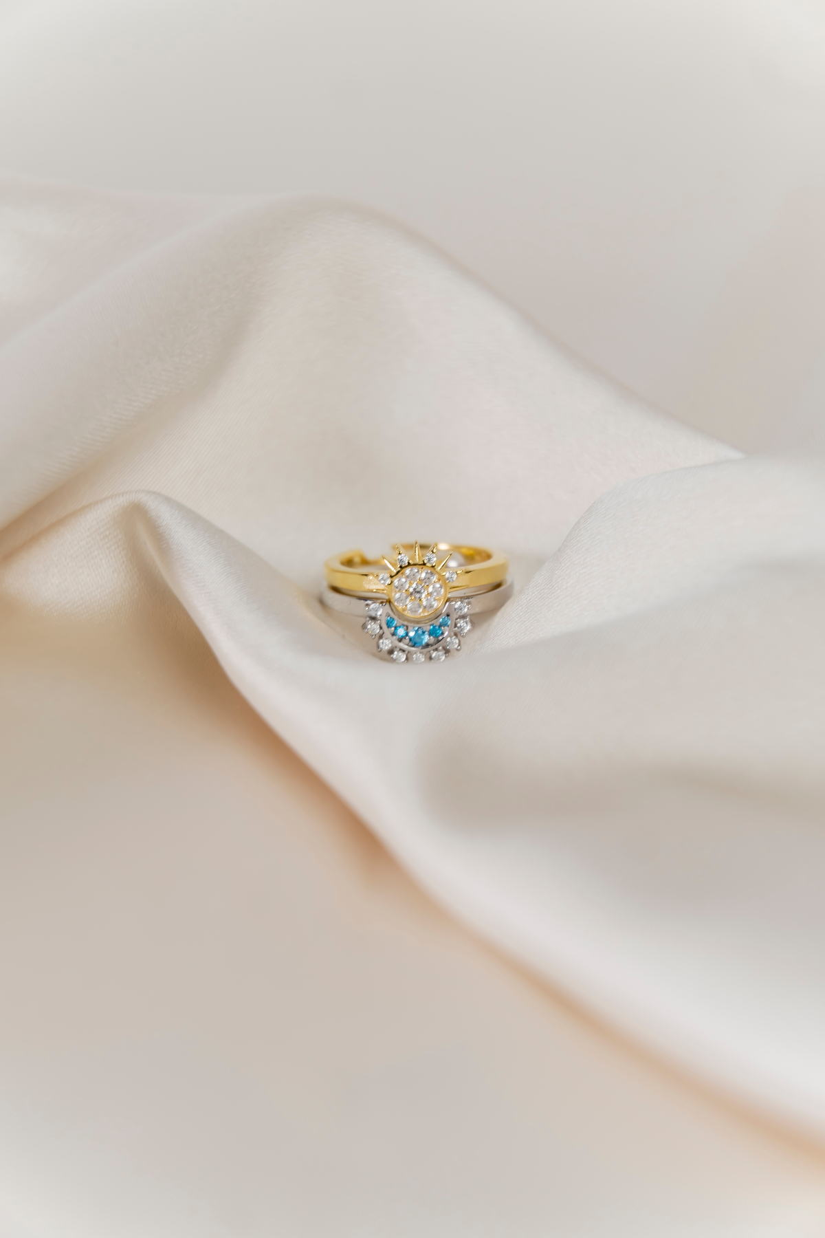 Zirkon Taşlı 925 Ayar Gümüş Yüzük, Güneş ve Ay detaylı Gümüş Yüzük, Gold Kaplama