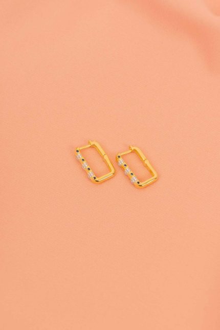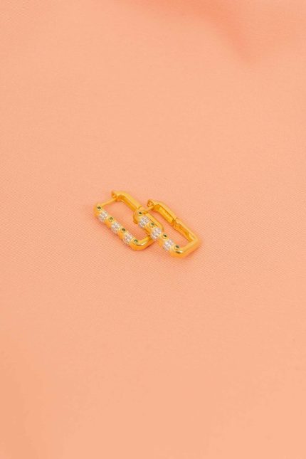Zirkon Taşlı Gold Kaplama 925 Gümüş Küpe, Anti Alerjik
