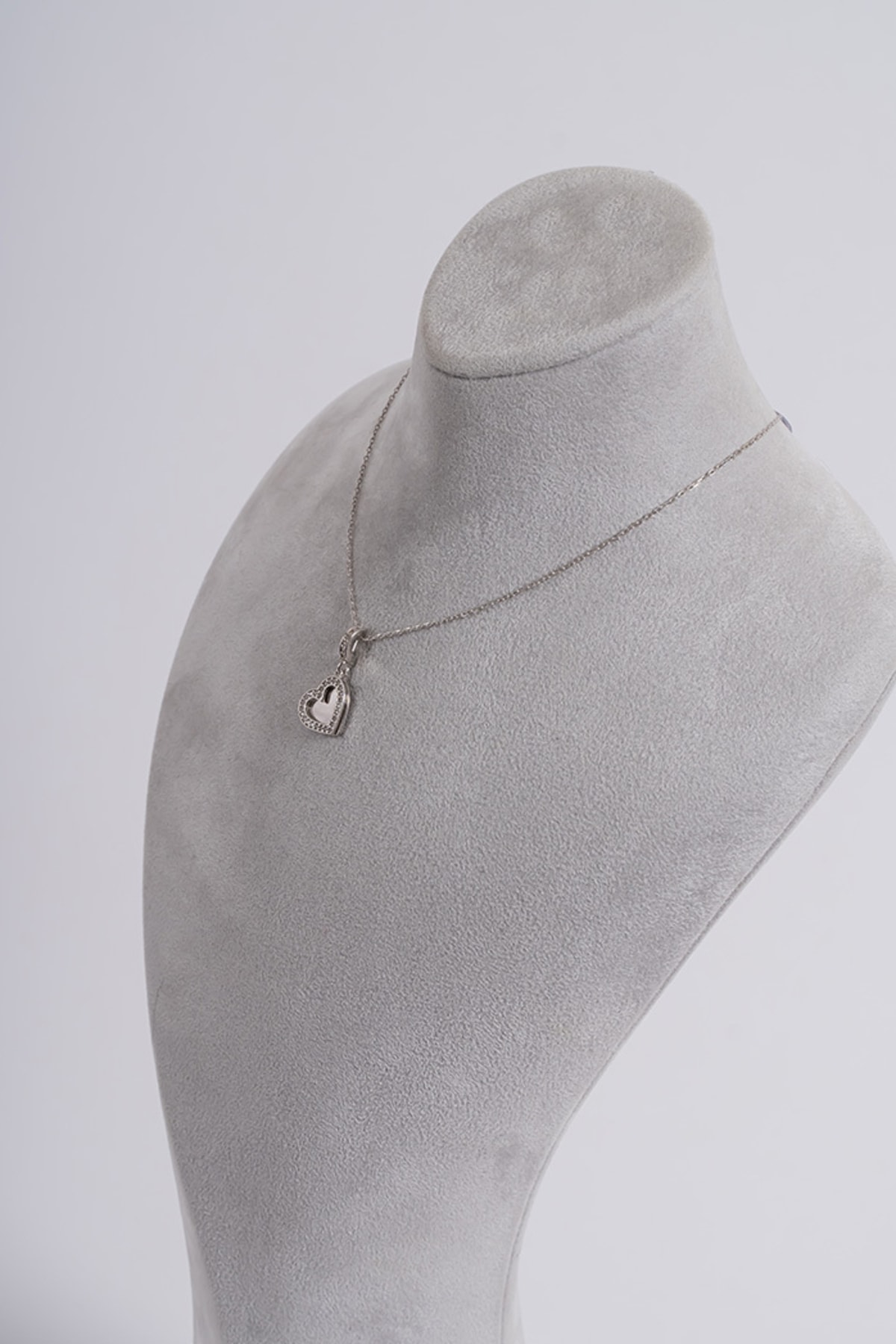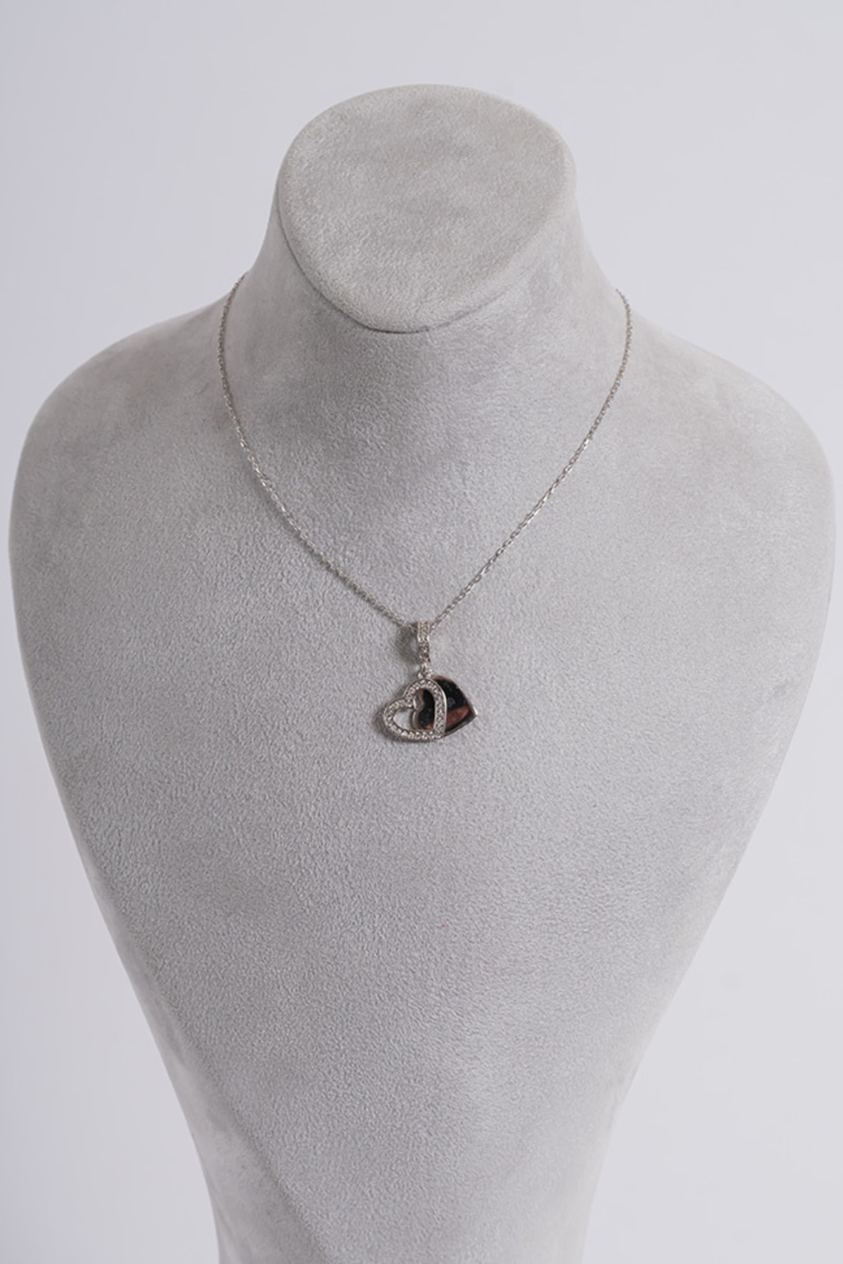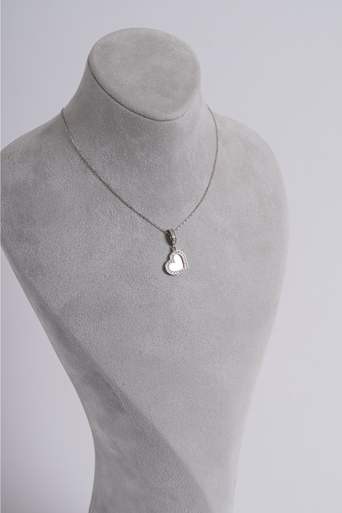 Zirkon Taşlı Kalpli Charm Kolye Silver 925 Ayar Gümüş
