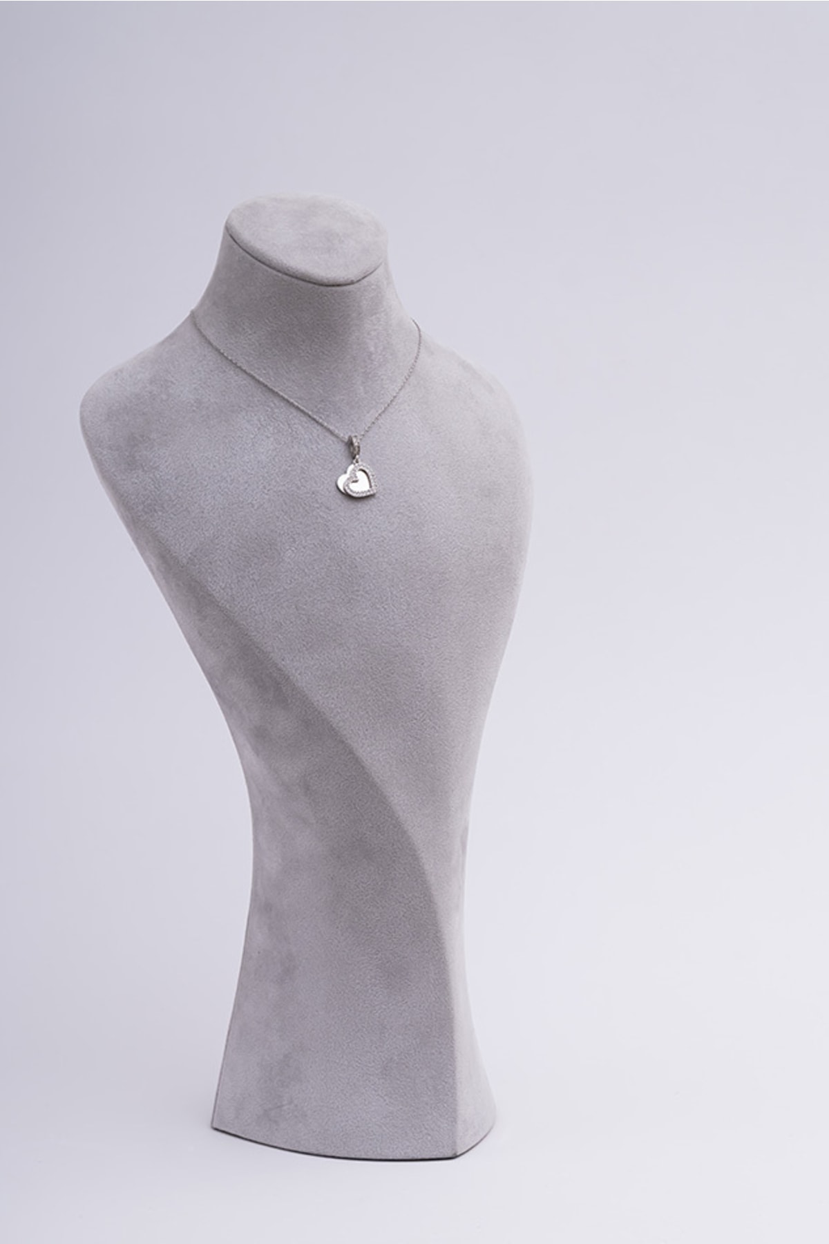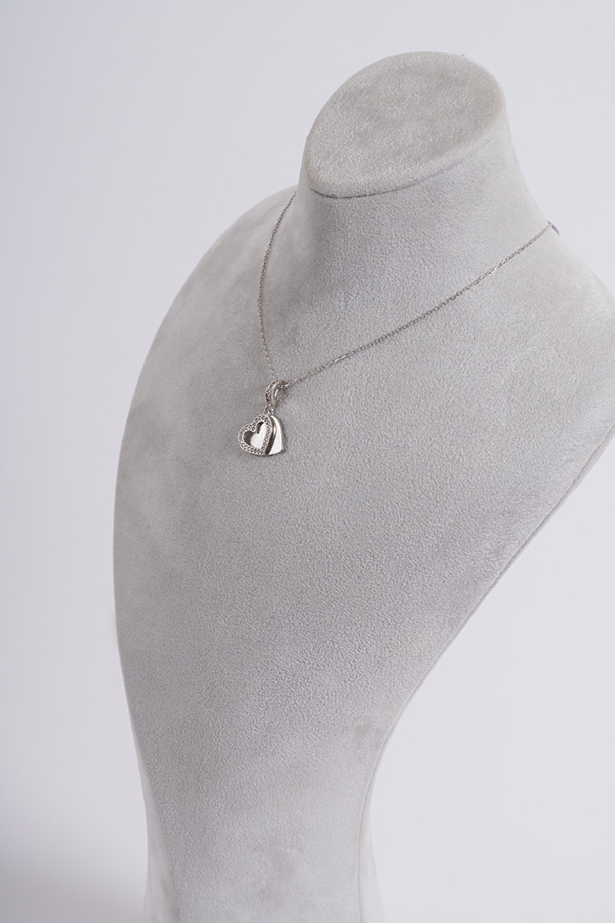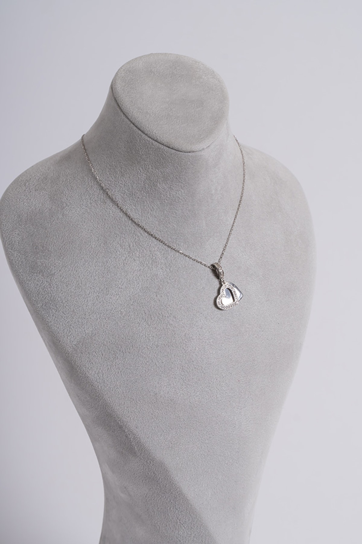 Zirkon Taşlı Kalpli Charm Kolye Silver 925 Ayar Gümüş