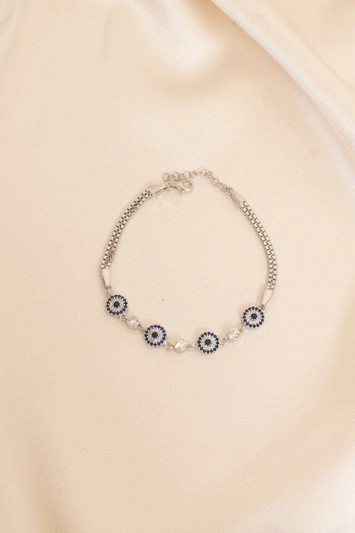 Zirkon Taşlı Nazar Boncuklu Gümüş BileklikAnti Alerjik 925 Ayar Gümüş