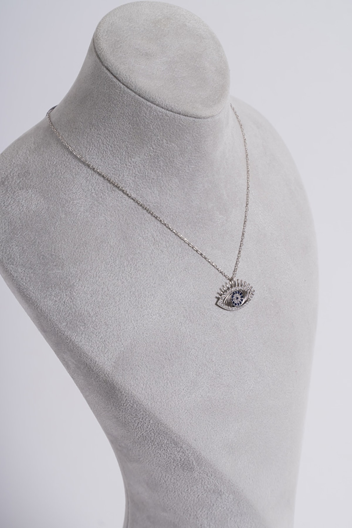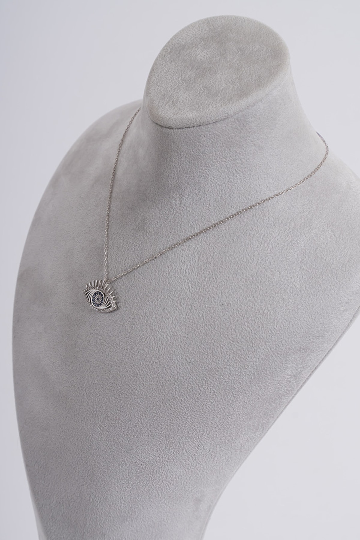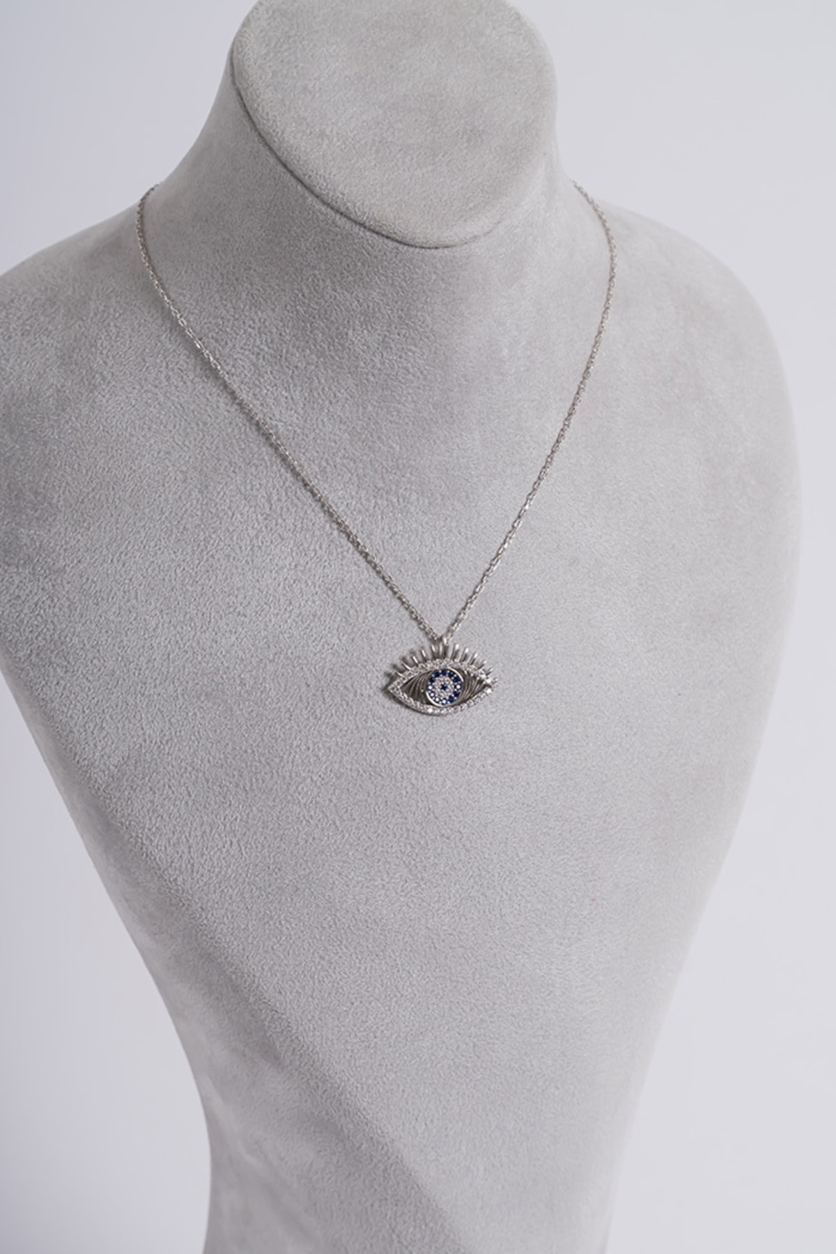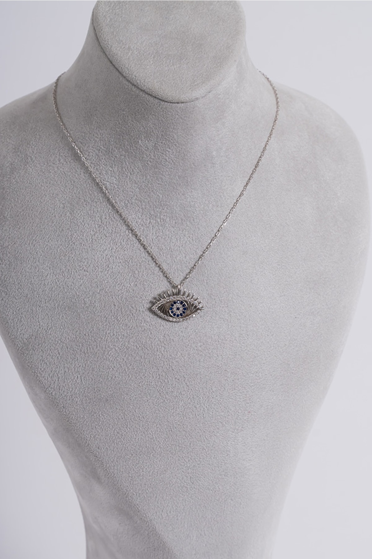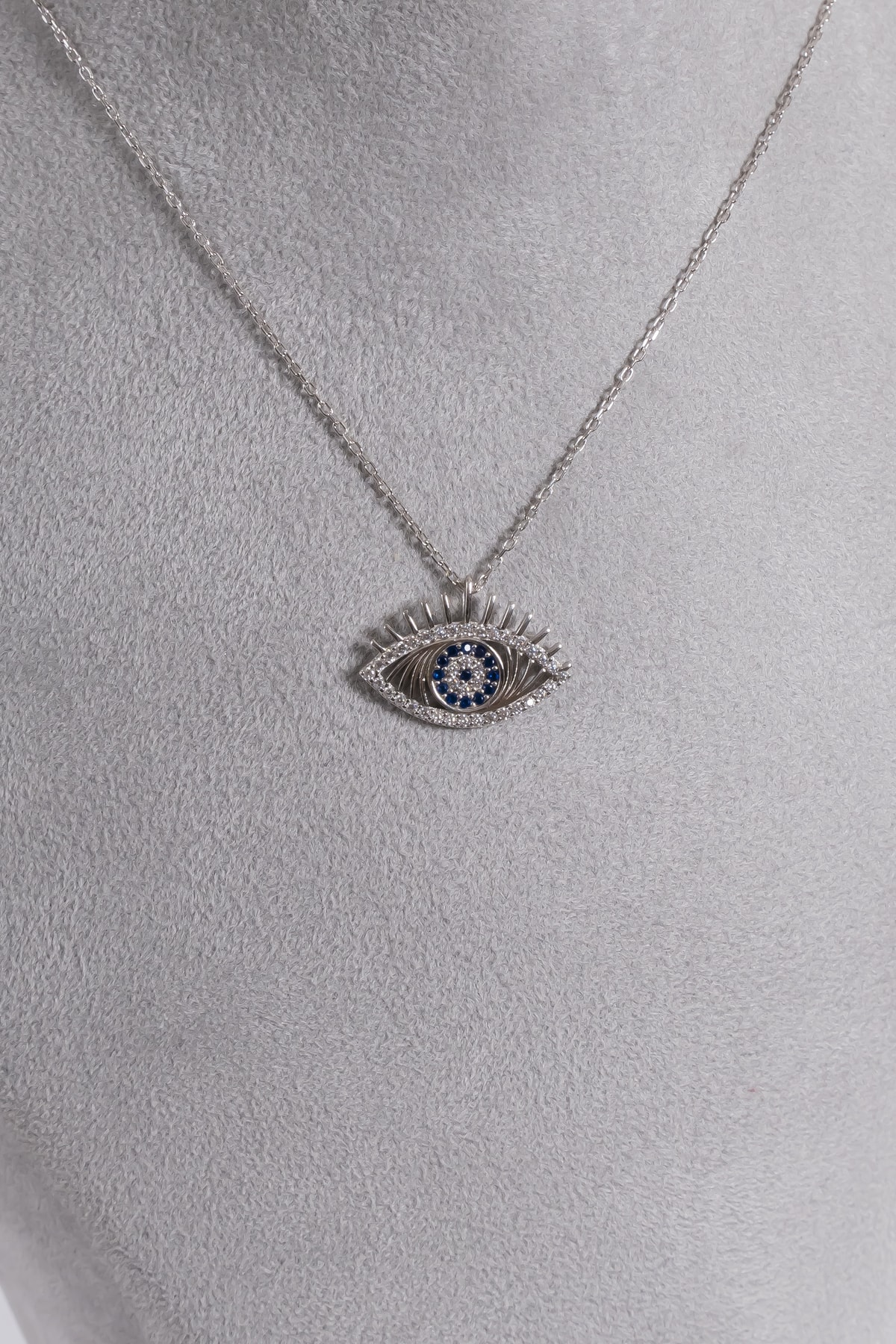 Zarif zirkon taşlarla süslenmiş, göz alıcı bir görünüm sunar; 925 ayar gümüş malzemesiyle kalite ve dayanıklılığı bir arada barındırır; Klasik ve modern tasarımıyla her türlü kıyafetle uyum sağlar; Göz kolye olarak tasarlanmış olup, nazarlık sembolizmini taşıyan özel bir aksesuar seçeneği sunar;