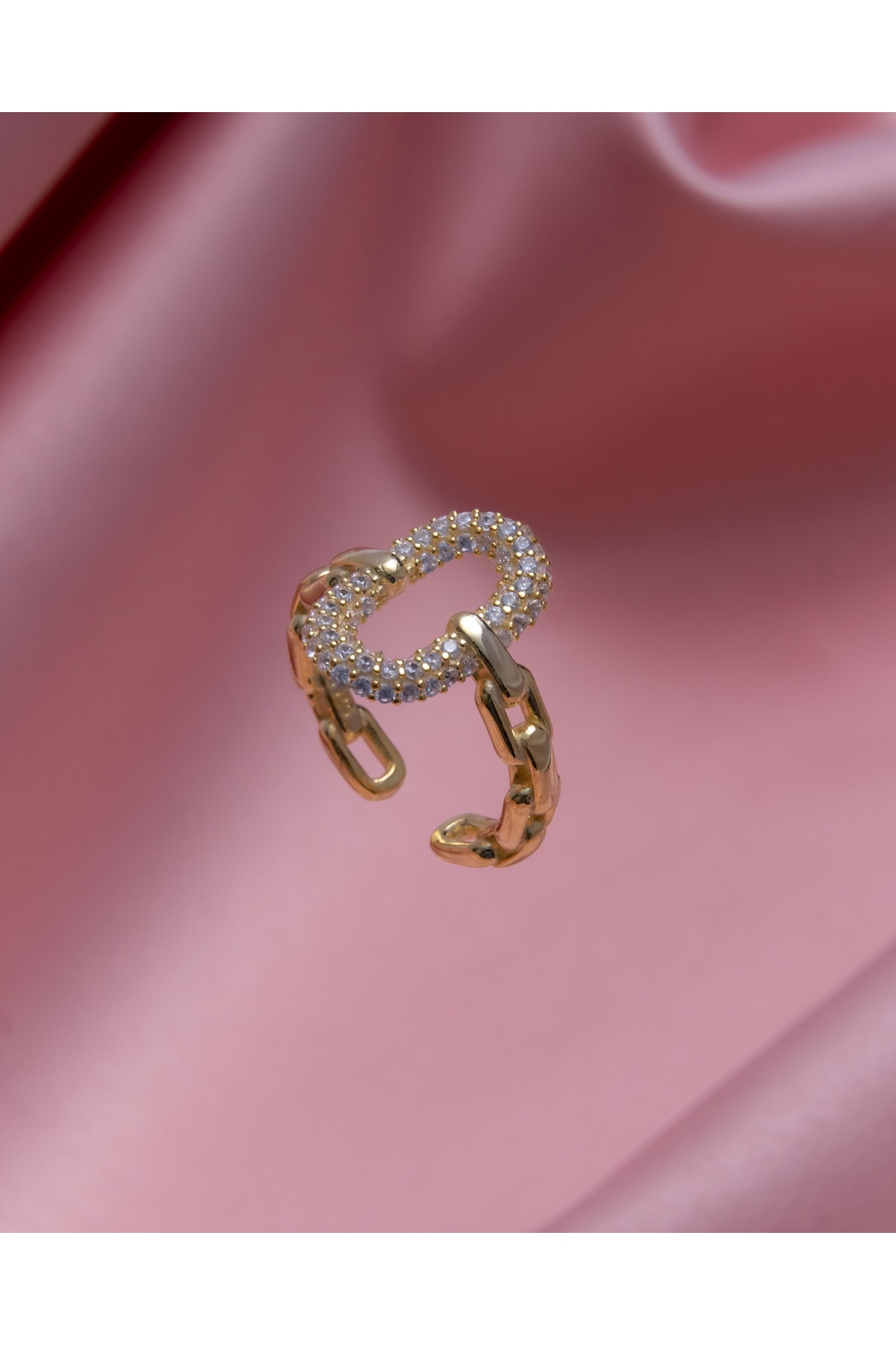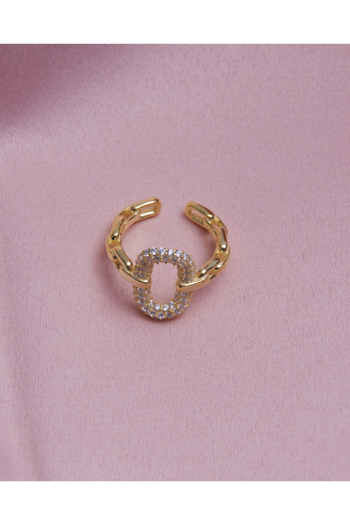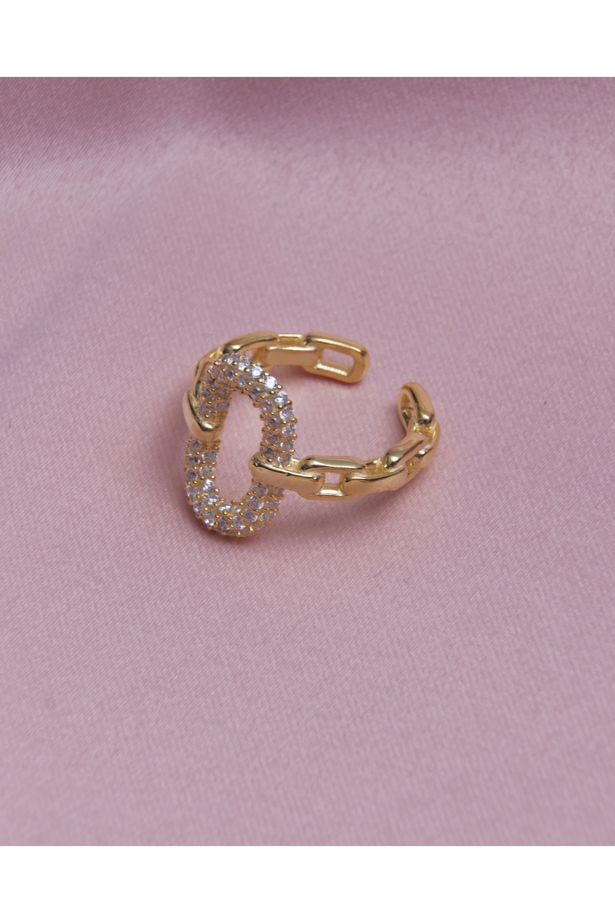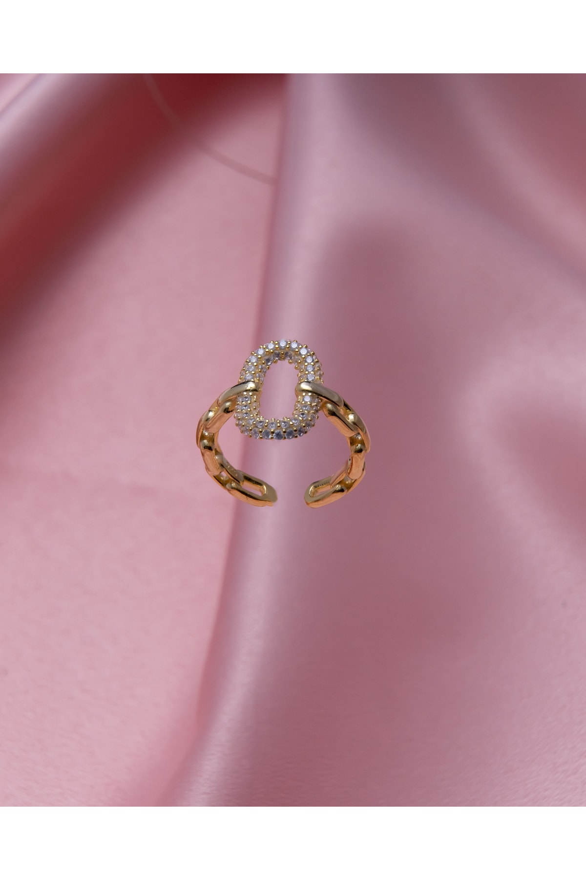 Zirkon Tas?lı Oval 925 Ayar Gümüs? Yüzük Gold Kaplama