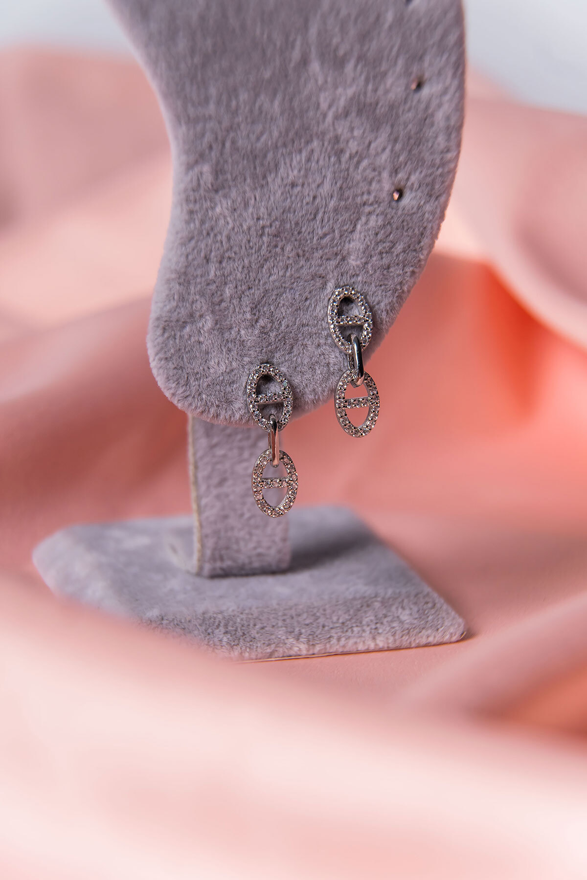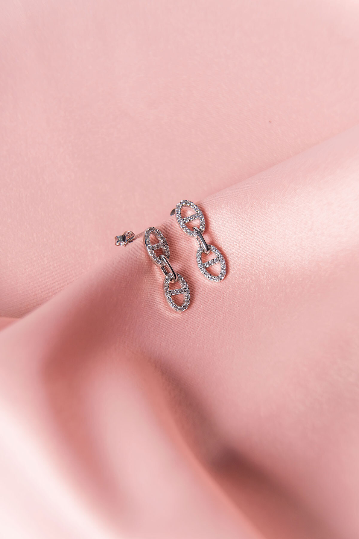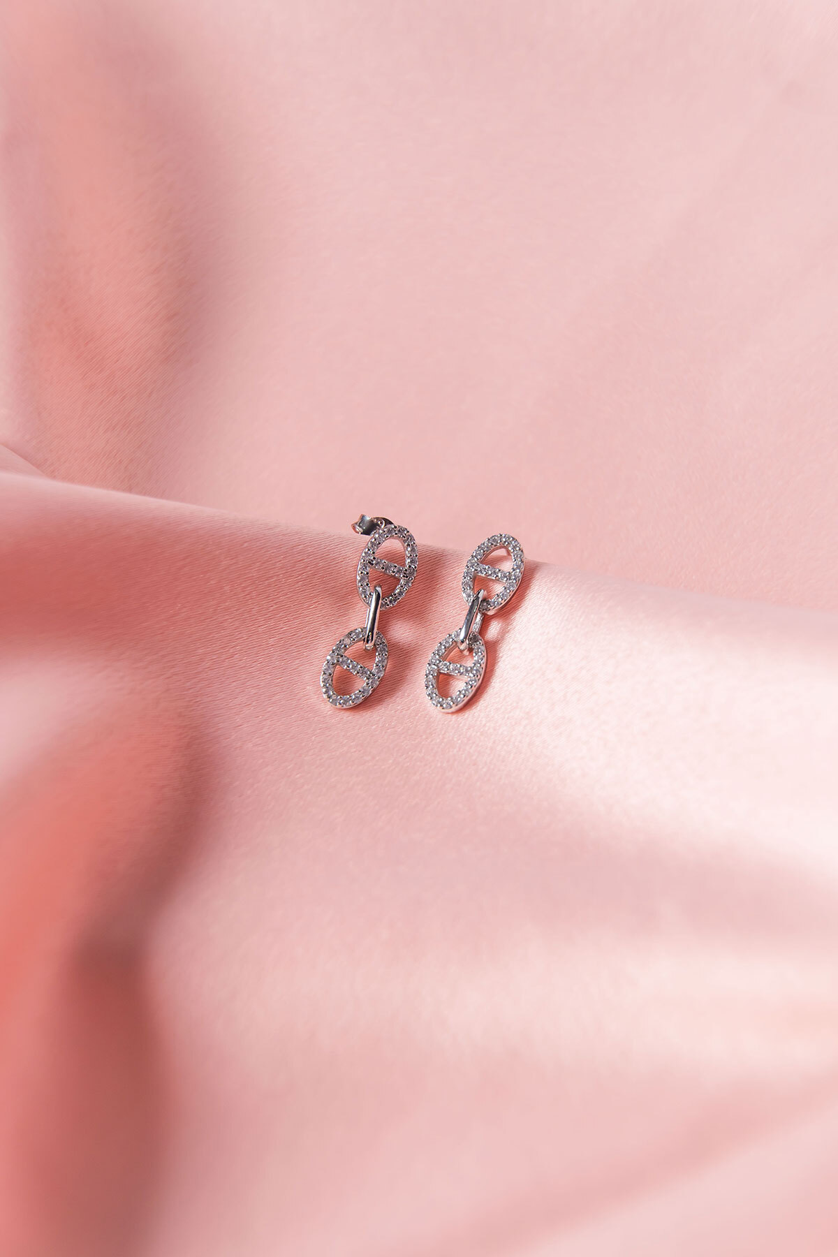 925 ayar gümüş malzeme ile üretilmiş, uzun ömürlü ve kaliteli bir aksesuar deneyimi sunar; Göz alıcı zirkon taşlarla süslenmiş, her türlü kıyafetle uyum sağlayacak zarif bir tasarıma sahiptir; Oval formdaki sallantılar, hareket halindeyken parıldayan bir ışıltı yaratır ve dikkat çekici bir görünüm sağlar; Zirkon taşların parlaklığı ve gümüşün asaleti ile her ortamda şıklığınızı ön plana çıkarır;